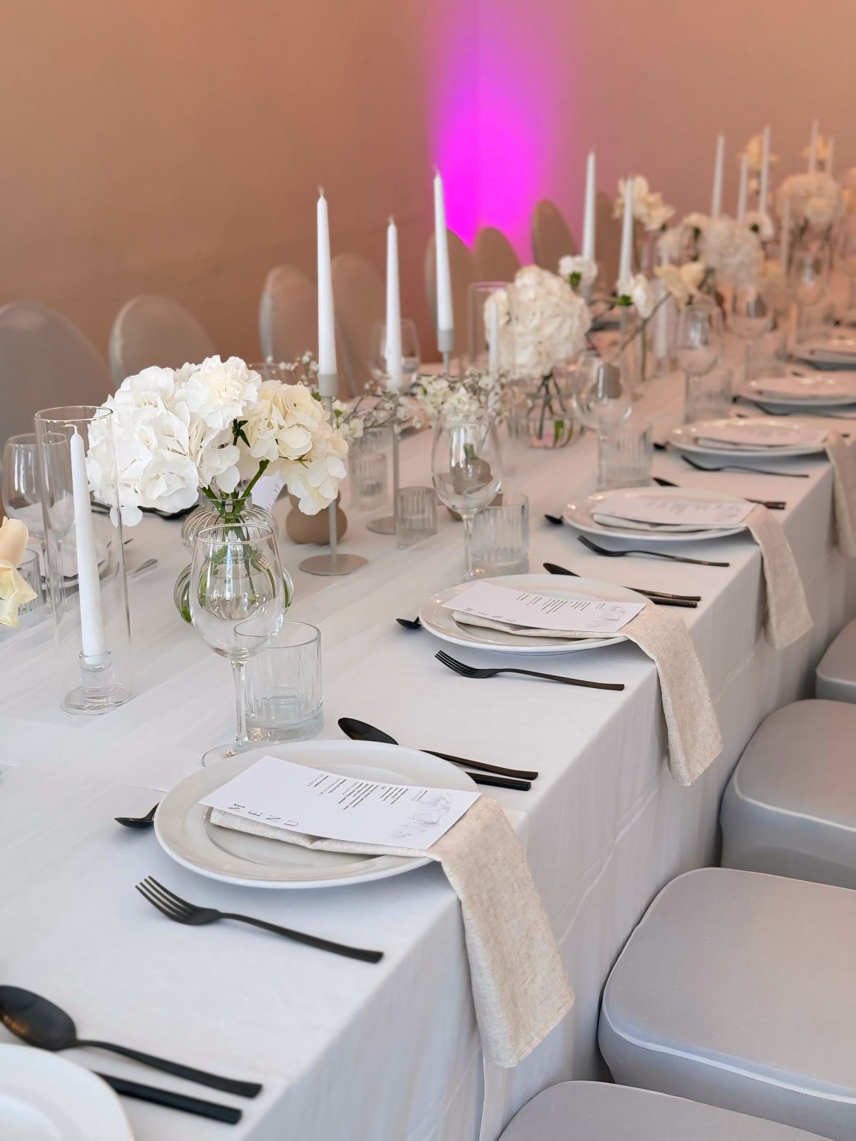 - Dekorateure (Geschirr und Gläser sind inklusive, Tischdecken nicht)