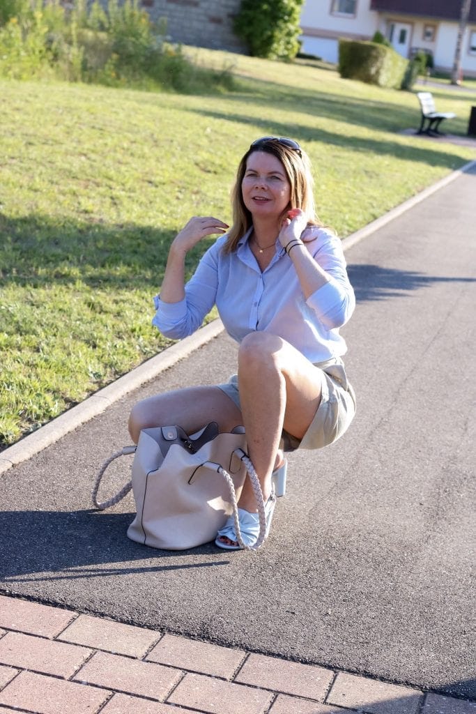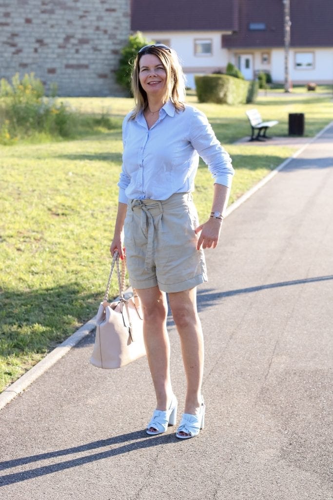 Genauso wichtig wie die passende Hose ist natürlich auch das restliche Outfit. Zu Shorts passen eher sportlich legere Kombinationen also ist es empfehlenswert die Mörder-Stilettos mal im Schrank zu lassen und die Lieblingssneaker auf Bürotauglichkeit zu testen. Mit klassischen Sneakern in schlichtem Design oder mit schicken Mules hat man den perfekten Partner für den lässigen Sommer Officestyle gefunden. Pumps, wie ich sie trage, sind dennoch erlaubt. Wichtig ist hier auf eine dezente Farbgebung zu achten die den Rest des Outfits komplimentiert, bunte und grobe Muster sind definitiv fehl am Platz.