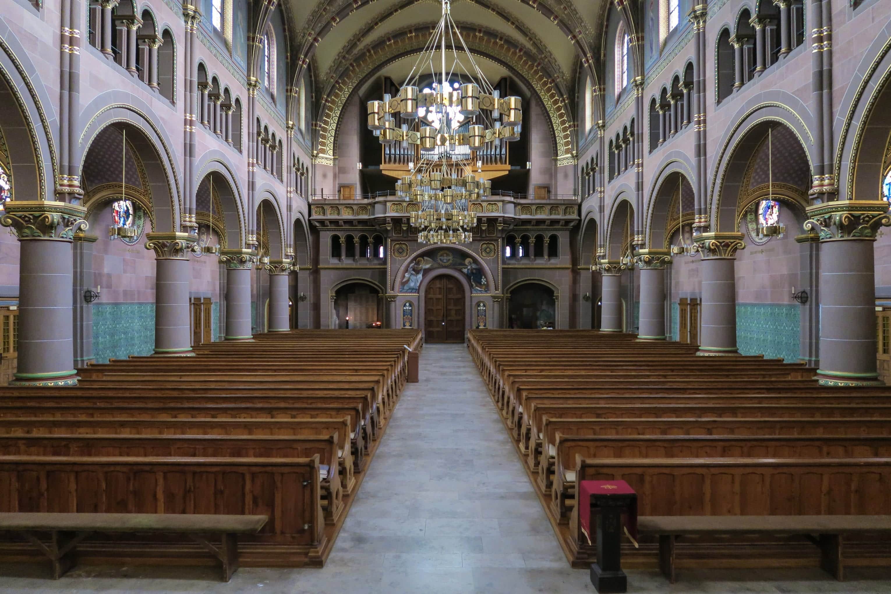 Darf man über ein Gotteshaus sagen, dass es dekorativ ist? Der Innenraum ist so freundlich (bunt) gestaltet, dass es einem ganz leicht ums Herz wird. Man hat regelrecht Lust sich hier länger aufzuhalten, einzutauchen und sich alles viel genauer anzuschauen. Mir gefällt, dass auf ein pompöses, goldverziertes Auftreten verzichtet wird und als ich dann noch über dem Beichtstuhl einen Zettel mit der Aufschrift “Aushilfe” vorfinde – lächle ich noch mehr als ich es ohnehin schon tue…