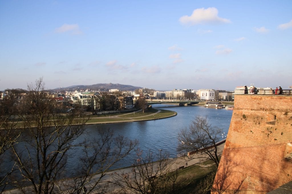 Danach fuhren wir zur Burg Wawel. Die befindet sich mitten in der Stadt, war früher Residenz der polnischen Könige und gehört gemeinsam mit der Krakauer Altstadt zum Weltkulturerbe der UNESCO. Eigentlich ist der Wawel eine Erhöhung mitten in der Stadt, auf der eine Burganlage thront, deren heutige Gestalt in über tausend Jahren Bauzeit mit Elementen der Romanik, Gotik und Renaissance gewachsen ist. Dazu gehören ein grüner Innenhof, ein romantischer Arkadenhof, viele Türme und Tore, Burgmauern und ein alter Höhlengang. Auch heute war es eiskalt, aber die Sonne schien, und der Himmel war strahlend blau. Mit der richtigen Kleidung kann man auf der Burg Wawel gut einen ganzen Tag zubringen. Am Fuß der Burg entdeckten wir bei deren Umrundung sogar einen Drachen, der etwa aller fünf Minuten kurz Feuer spuckte. Ein überraschender und imposanter Moment, den ich filmen wollte, doch leider hatte ich den Einsatz verpasst. Immerhin hat Michael das feuerspeiende Monster auf dem Bild verewigen können. Erkennst Du die Flamme auf den Bildern? Schau mal genau, dann waren es immerhin keine unnötigen fünf Minuten in der klirrenden Kälte.
