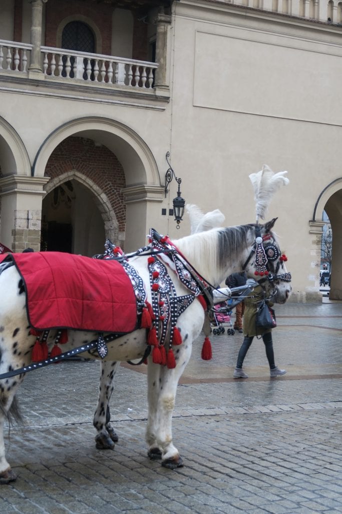 Die Marienkirche ist eine römisch-katholische Basilika und gehört zu den Wahrzeichen Krakaus. Beeindruckt hat uns das prächtige Innenleben: für katholische Kirchen typischer Prunk in Gold mit prächtigem Gewölbe. Die beiden Kirchtürme sind überraschenderweise unterschiedlich hoch – 81 Meter und 69 Meter. Am äußeren Seiteneingang befindet sich sogar noch ein Pranger: Übeltäter wurden hiermit an die Kirche gekettet und somit vorübergehend Schimpf und Spott der übrigen Bevölkerung ausgesetzt. Schräg gegenüber der Marienkirche steht der einsame Rathausturm. Das Rathaus gibt es nicht mehr, da es im 19. Jahrhundert wegen Baufälligkeit abgetragen wurde. Doch der Turm ist aus dem 13. Jahrhundert erhalten und beherbergt eine Sammlung von Uhren aus dem 16. Jahrhundert. Hier oben kann man bereits einen schönen Blick auf die Tuchhallen werfen. Deren Originalbau im gotischen Stil stammt aus dem 14. Jahrhundert und wurde vom damaligen polnischen König Kasimir dem Großen veranlasst.