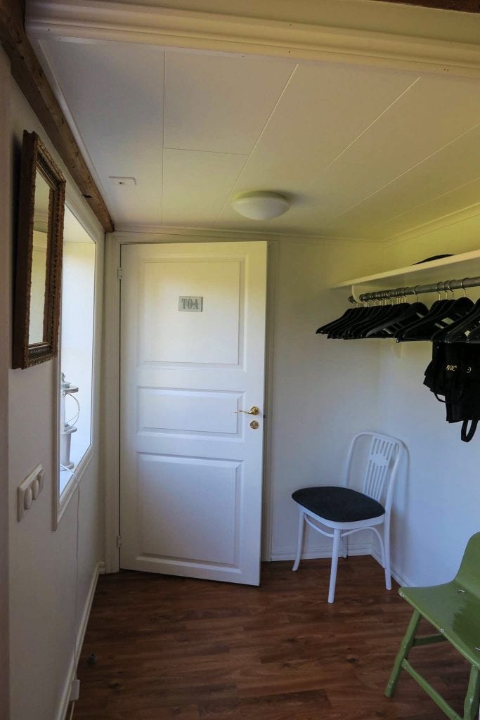 Am Abend erfolgte eine kleine Einweisung in unsere modern ausgestattete Unterkunft. Dabei wurden wir auch mit der schwedischen Gewohnheit vertraut, die Schuhe vor dem Betreten einer Wohnung auszuziehen. Am nächsten Morgen wurde uns die 7 Ferienhäuser umfassende Anlage inmitten der wildromantischen Natur ausführlich gezeigt. Da die Saison schon fortgeschritten war, waren wir die einzigen Gäste; sogar unsere netten Gastgeber sind einen Tag später in den Urlaub nach Italien gefahren. Netterweise durften wir ihr Privatgelände am naheliegenden See benutzen. Das haben wir bei dem tollen spätsommerlichen Wetter mitten im September ausgiebig genossen. Der Traum von einem gemütlichen Häuschen am See ist für uns wahr geworden! Übrigens wurde uns das große Geheimnis rund um die rote Häuserfarbe gelüftet: Durch den Hauptbestandteil Kupfer hält sie ewig!