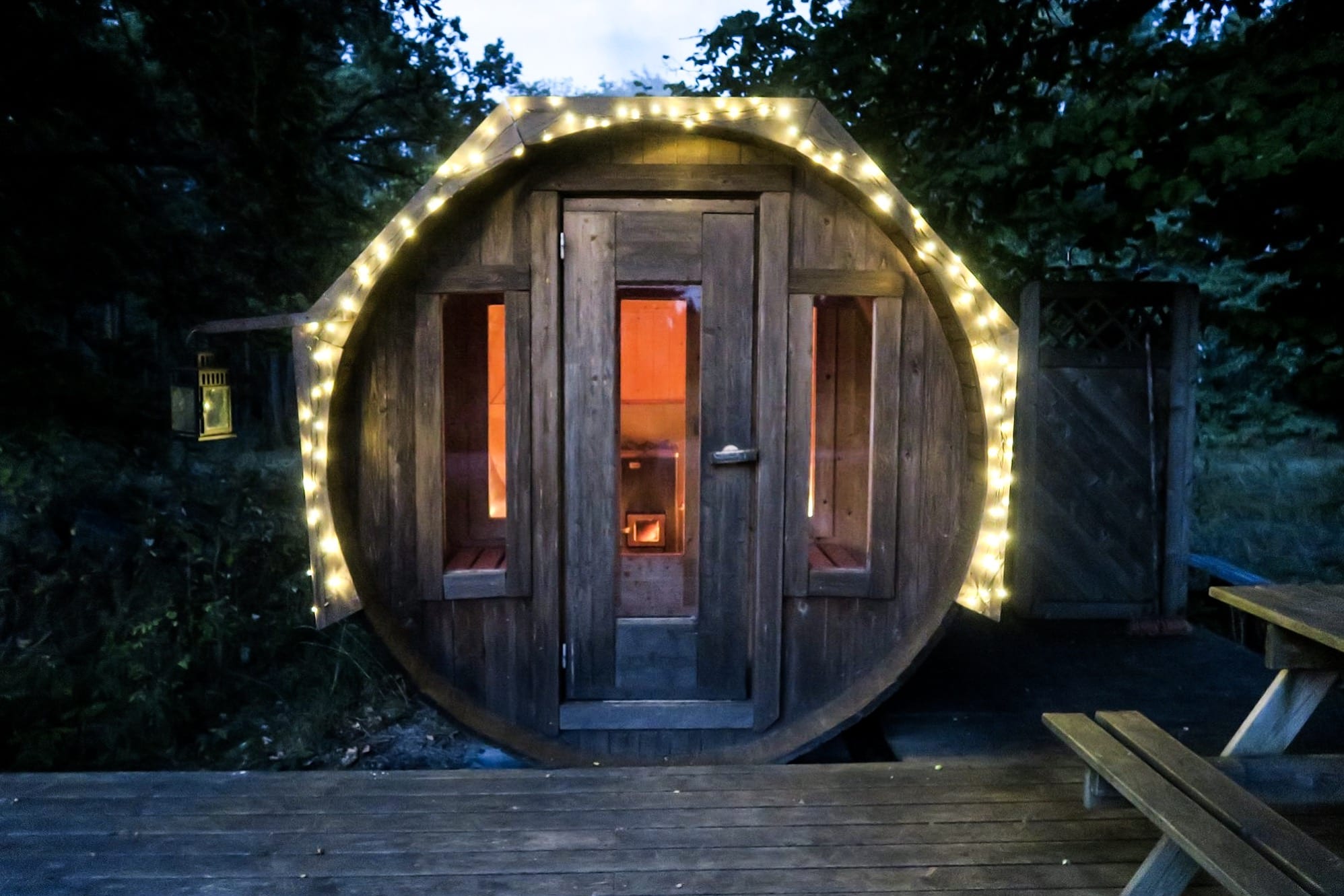 Nach diesem Ausflug in unsere Kindheit ging es zurück in die Ferienwohnung. Zuvor waren wir im Ort Tuna in einem kleinen, gut sortierten Laden einkaufen. Unseren Abend haben wir beim Grillen ausklingen lassen. Die urig anmutende Sauna im Fass war stimmungsvoll beleuchtet, und wir hatten sie ganz allein für uns. Was gibt es nach einem erlebnisreichen Tag Entspannenderes als eine heiße Sauna?