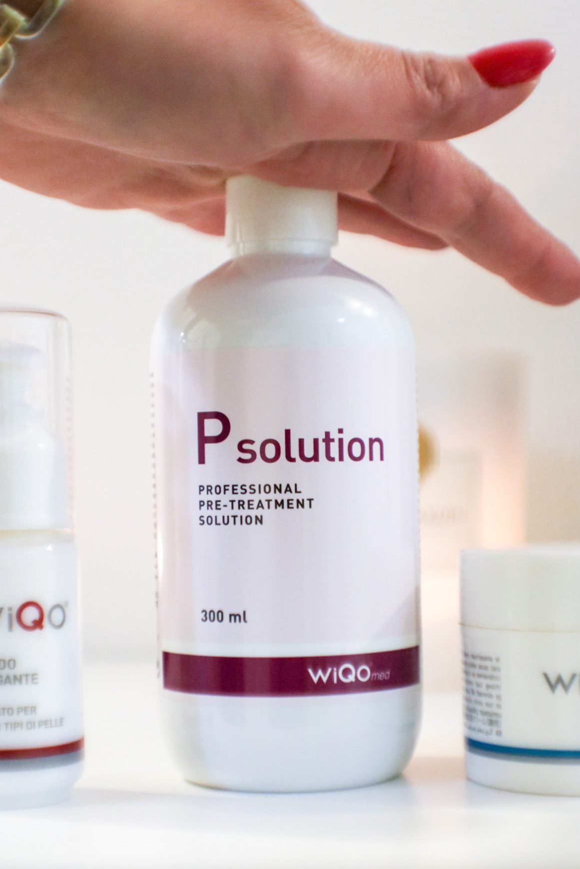#STEP 1 Um die Haut optimal auf das bevorstehende Treatment vorzubereiten, wird sie im ersten Schritt gründlich gereinigt und von Make-up Rückständen befreit. Hierbei wird die spezielle Lösung „P-Solution“ verwendet, die den PH-Wert der Haut senkt und entfettend wirkt.