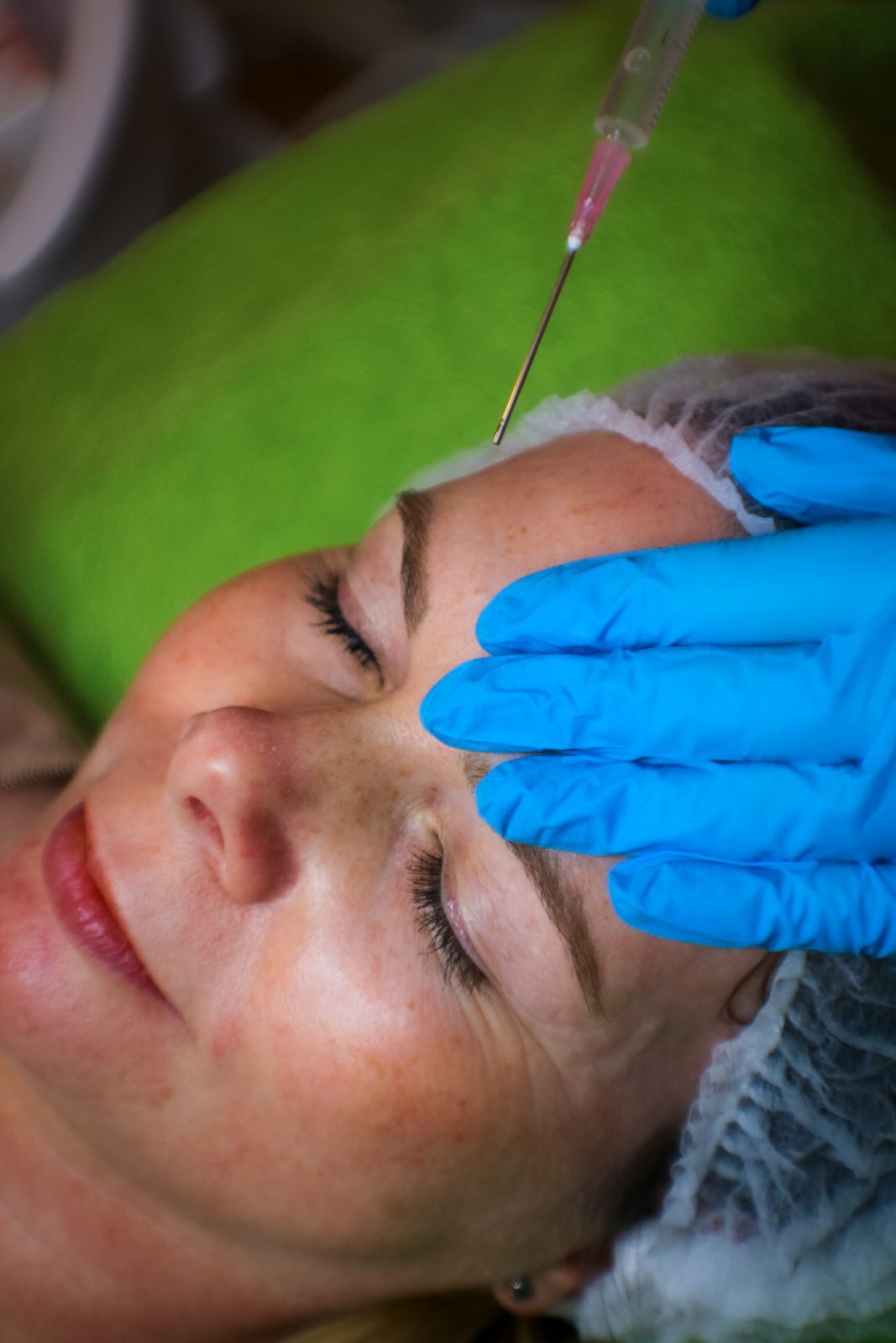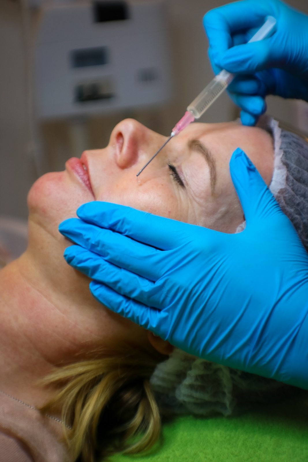 #STEP 2 Direkt im Anschluss wird das flüssige PRX-T33 Gel in 2 Schichten (abhängig vom Hautzustand) auf dem gesamten Gesicht aufgetragen. Das geschieht händisch und mit speziellen, sehr angenehmen Streichbewegungen. PS: Die "Spritze" dient der Dosierung. Es erfolgt KEINE Injektion.