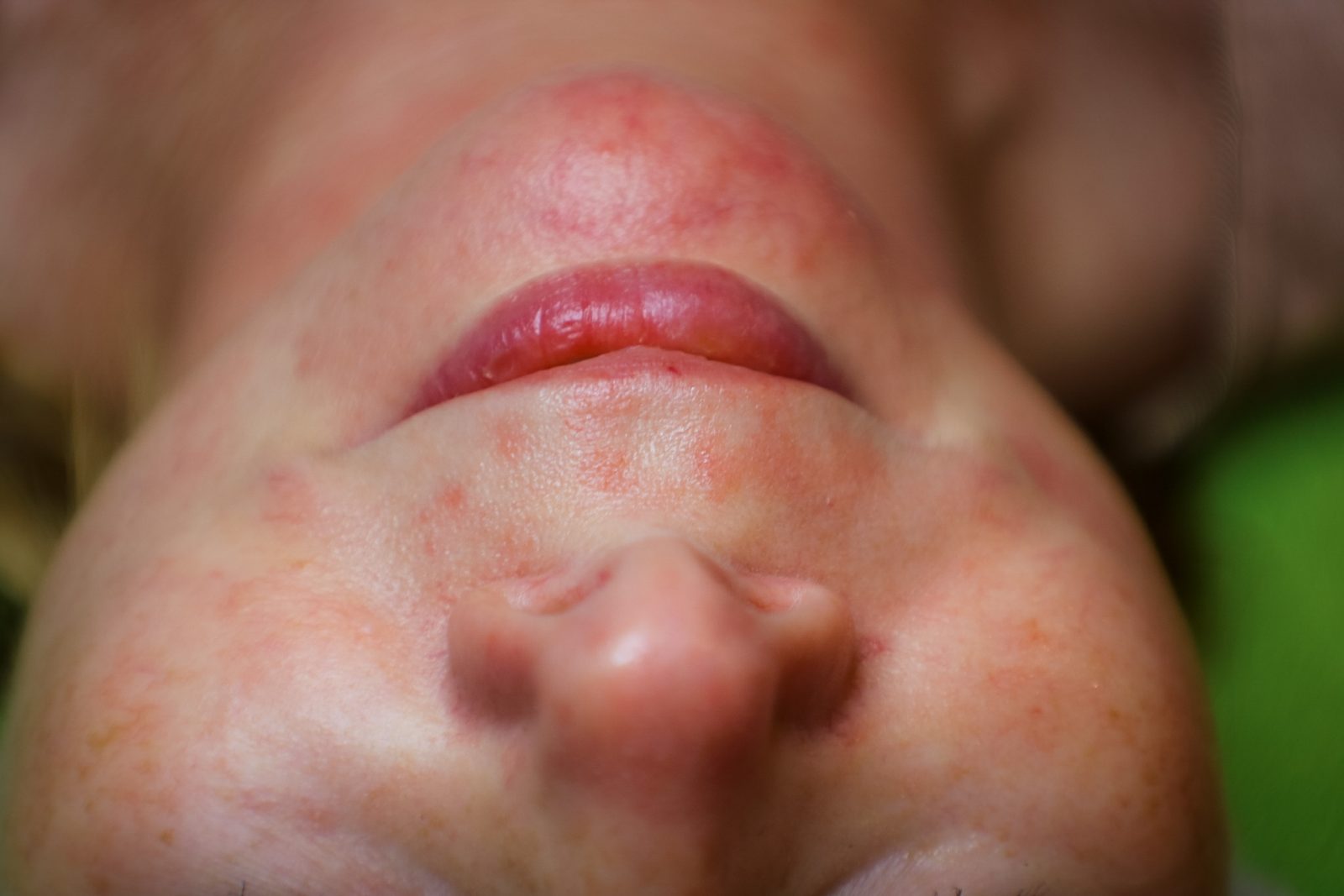 Hier gut zu erkennen, meine leichte Couperose und wie das Peeling an manchen Stellen "arbeitet".