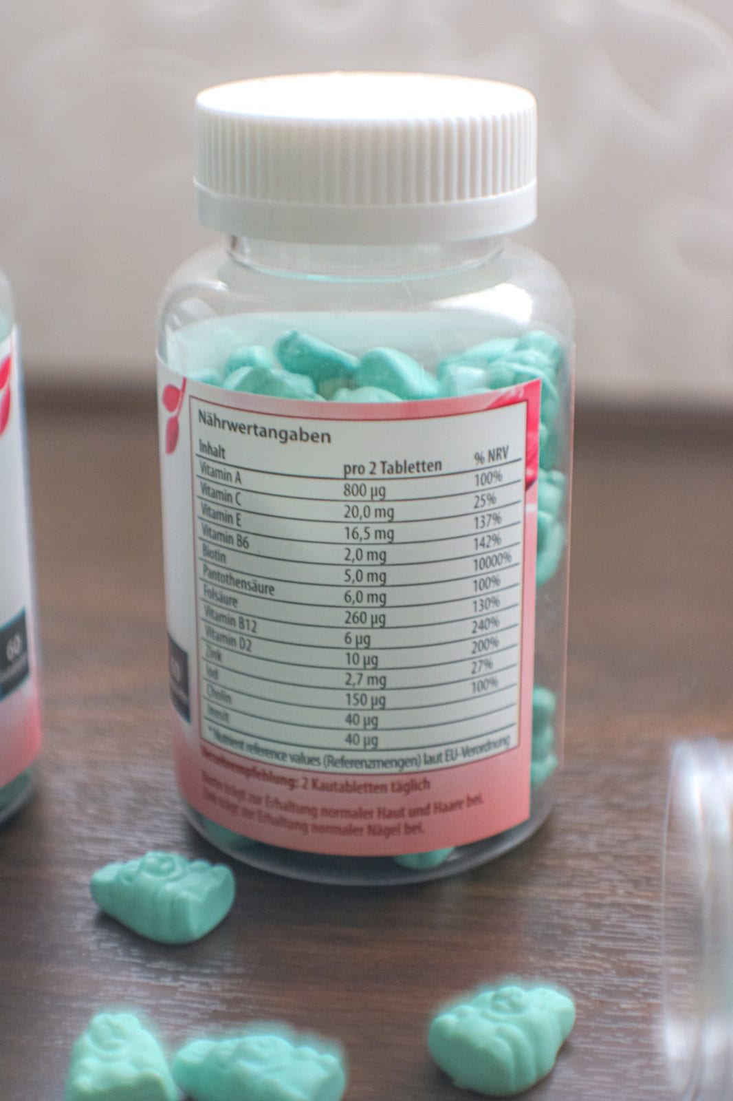 Ein ganz klares – Ja! Und warum tue ich das? Ein ganz großes Plus ist definitiv der Naschcharakter. Oft schrecken Pillen oder Pulver als Nahrungsergänzungsmittel ab. Hier schmeckt und fühlt es sich aber wie ein Fruchtgummi an. Zudem ist der Geschmack noch sehr erfrischend. Die Wirkung ist nach einigen Wochen spürbar. Mit unter die reichhaltigen Inhaltsstoffe, wie das Vitamin “H” sind hier sicherlich nicht unschuldig. “H” steht hier für Haut und Haar, eigentlich heißt dieses Vitamin aus dem B-Komplex aber Vitamin B7 oder geläufiger Biotin. Da Dein Körper keine Biotin-Reserven bilden kann, bist Du also ständig darauf angewiesen, Deinen Bedarf aufs Neue zu stillen. Wie auch bei anderen Nährstoffen fällt es erst auf, wenn ein Mangel besteht.
