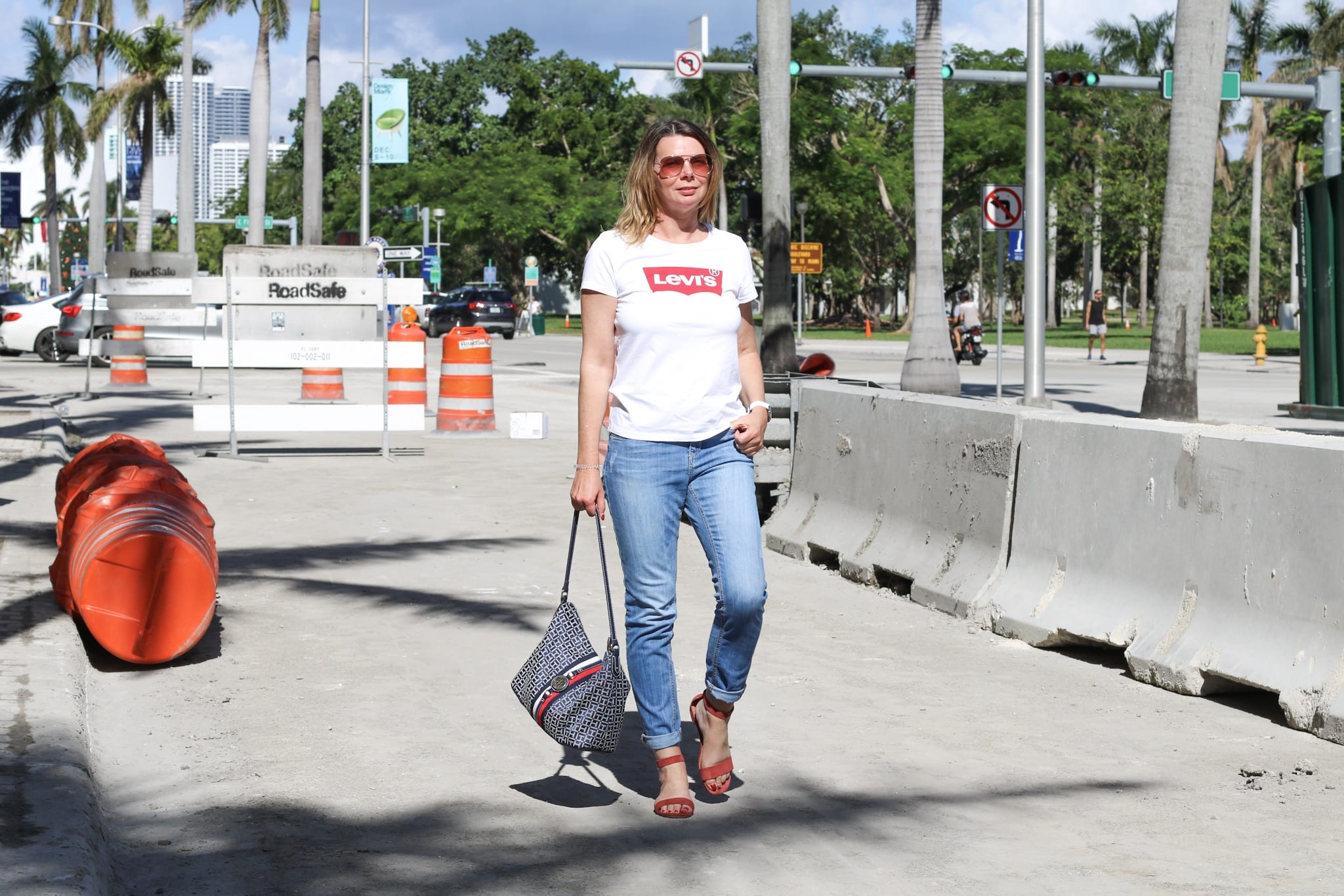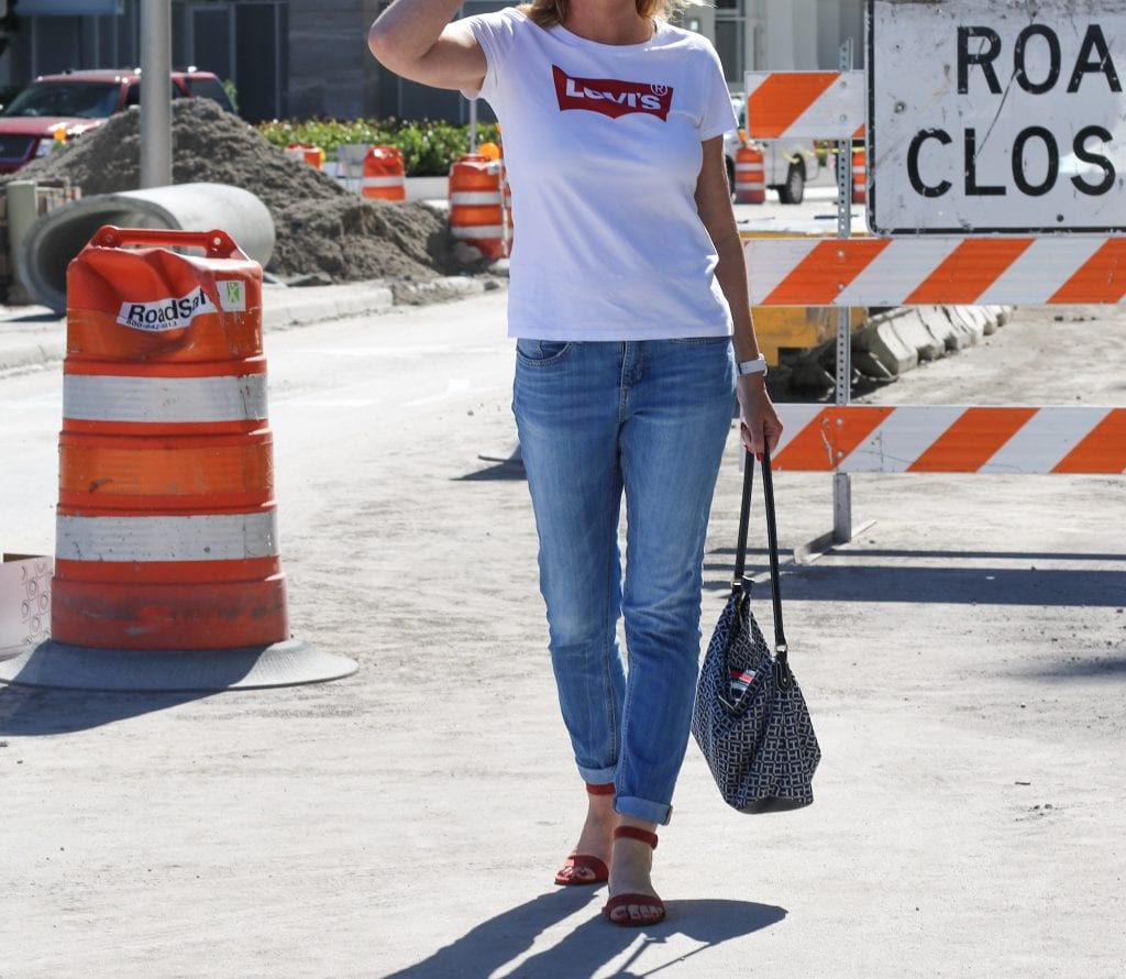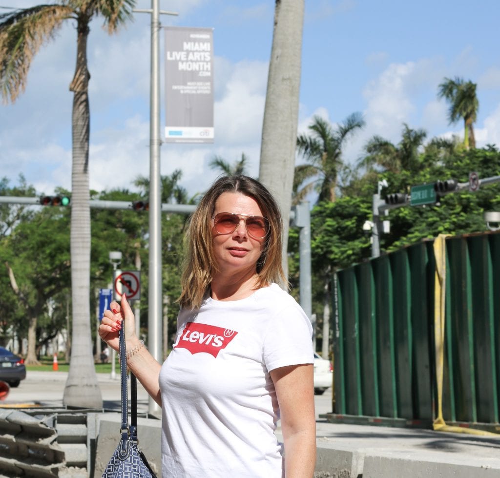 Zurück in der Mall stellte sich allmählich eine Enttäuschung ein, denn bei vielen Marken gab es gar keine großen Rabatte, sodass es keinen großen Unterschied zu den Preisen in Deutschland gab. Nur bei Levis, Hilfiger und Victoria Secrets wurde ich fündig. Hier konnte ich ein paar Schnäppchen machen. Auf den Fotos siehst Du mein neues Levis-Shirt und die Handtasche von Hilfiger. Das habe ich dann gleich vor der Kulisse von Miami für Dich fotografiert. Eine Baustelle und einen typischen Fire hydrant. Ich find es cool.