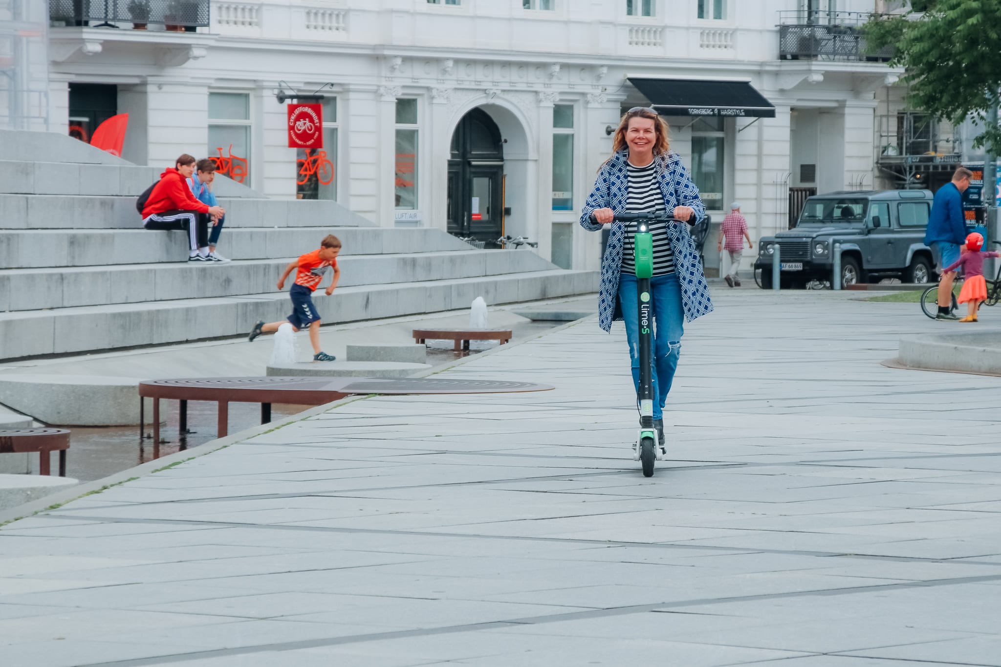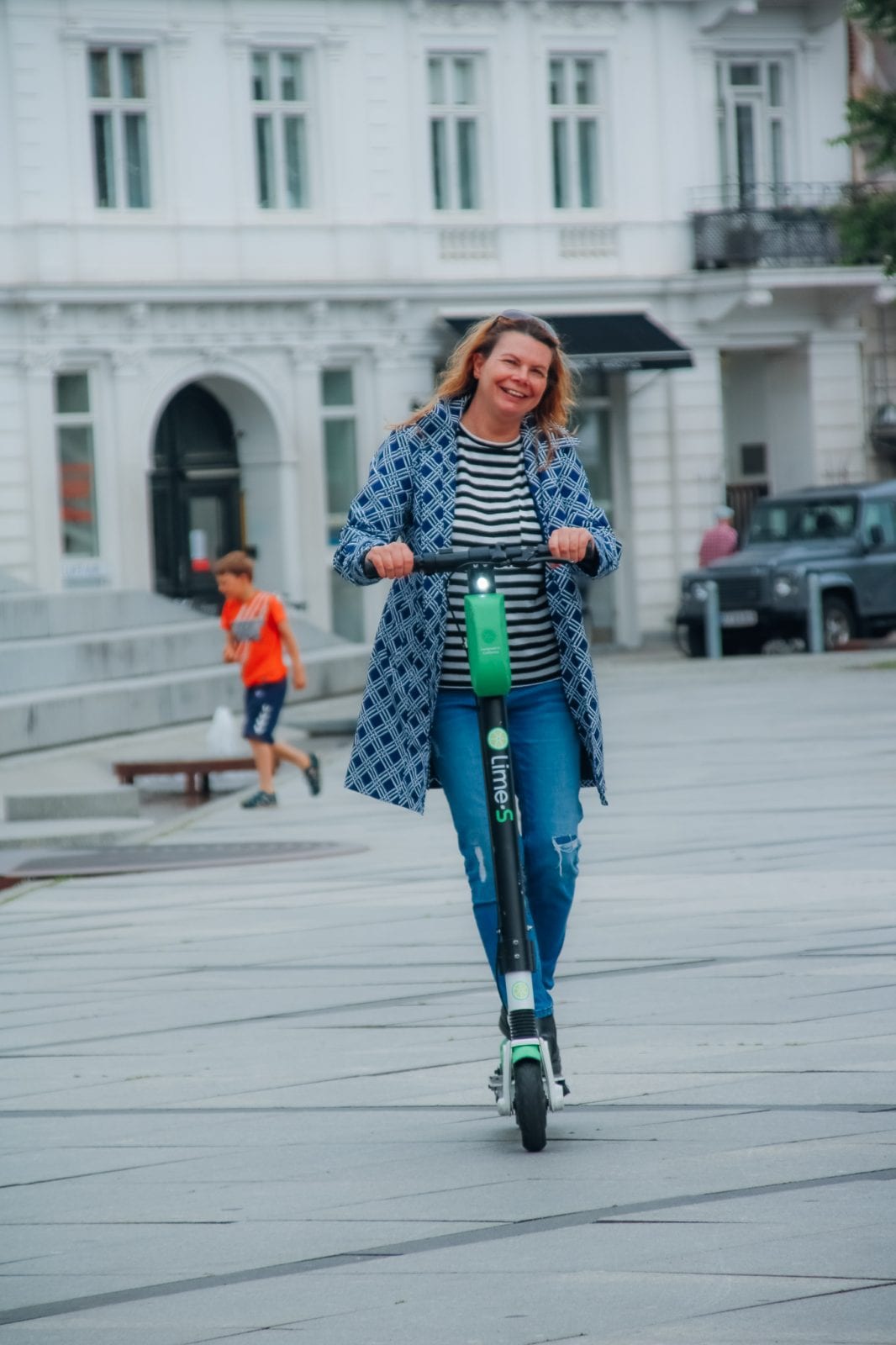 Tier, Lime-S und Voi teilen sich den Markt in der dänischen Hauptstadt auf. Während Voi sich auf das Stadtzentrum konzentriert, agieren die beiden anderen Anbieter auch in den Außenbezirken. Die Idee, überhaupt einmal einen E-Scooter zu nutzen kam von Petra, als wir nachmittags Kopenhagen zu Fuß und per Bus erkundeten. Auf den Bildern sieht man, was für ein Spaß sie damit hatte.