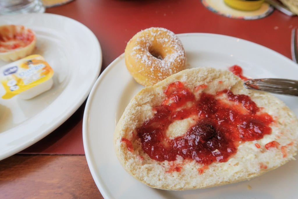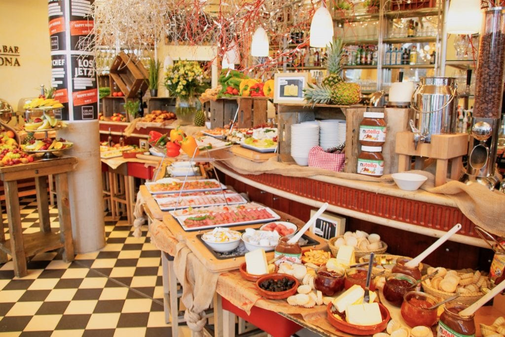 Am Wochenende und an Feiertagen gibt es zusätzlich eine heiße Theke. Dort bekommst Du ganz frisch nach Deinen Wünschen vor Deinen Augen Waffeln und Omeletts zubereitet. Möchtest Du einfach nur schnell und gut frühstücken, dann empfehle ich Dir, sei bereits um 9 Uhr da. Ab etwa 10 Uhr füllt es sich langsam. Für alle anderen heißt es, genießt es und plant den ganzen Vormittag ein. Geht mehrfach zum Büffet und probiert alle Spezialitäten.