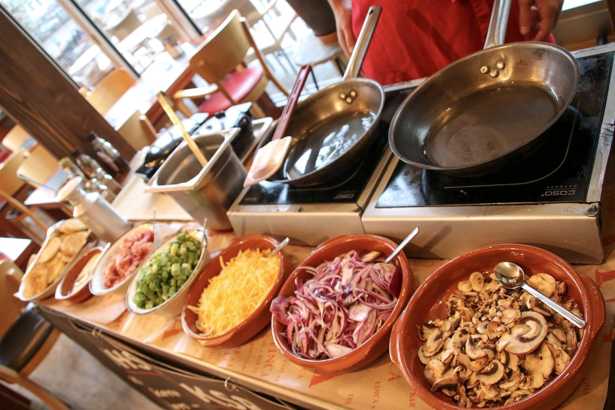 Neben dem großen Brot- und Gebäckangebot findest Du direkt daneben eine reichhaltige Wurst- und Schinkenauswahl. Sogar Zwiebelmett ist vorhanden! Natürlich gibt es Joghurt- und Quarkspeisen und die Liebhaber des kontinentalen Frühstücks kommen ebenfalls auf ihre Kosten und finden heiße Würstchen, Eier, Speck und Bohnen. Magst Du es lieber iberisch, dann bedien Dich an der köstlichen Tapasbar. Auch eine kleine süße Auswahl an Desserts steht Dir zur Verfügung! Ein großer Obsttisch rundet das ganze geschmackvoll ab.