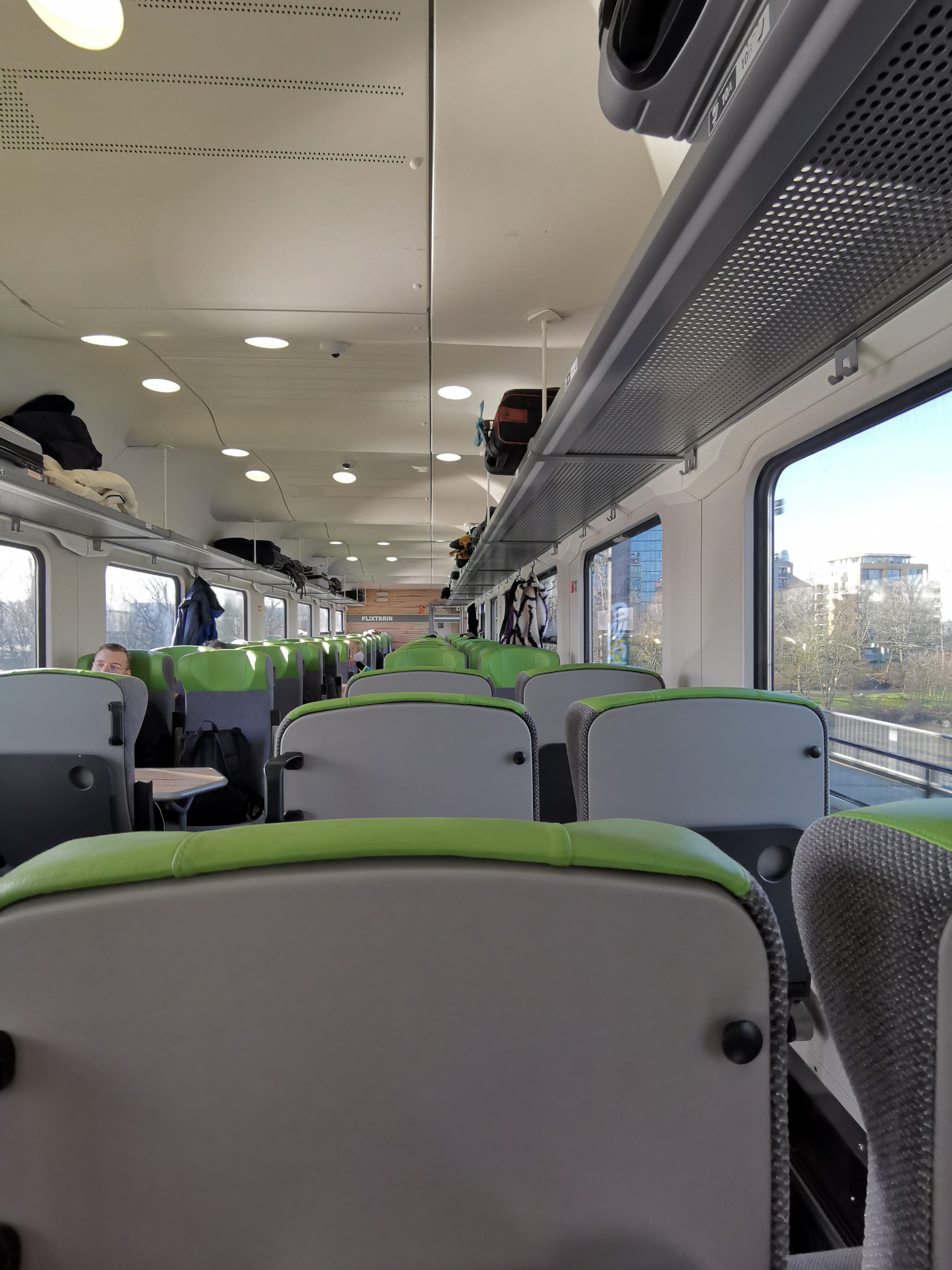 Zunächst einmal möchte ich Dir die Tücken beim Buchungsprozess aufzeigen. Zwar wirbt Flixtrain mit einem festen Sitzplatz, das war es aber auch schon mit dem Werbeversprechen. Reist Du nämlich zu zweit, wirst Du zwangsweise auseinandergesetzt. Ich testete dies bei mehreren Buchungen, jedes Mal, obwohl der Waggon fast leer war, wirst Du zwar ortsnah, aber dennoch auseinander platziert. Die Idee, einen zusätzlichen bestimmten Sitzplatz gegen eine Gebühr anzubieten, ist erkennbar, allerdings ist dies nach der Buchung nicht mehr möglich! Du sitzt also tatsächlich mit Deinen Reisepartnern nicht zusammen und kannst selbst gegen Geld nichts daran ändern, außer mit anderen Reisenden ein nettes Tauschgespräch zu führen…