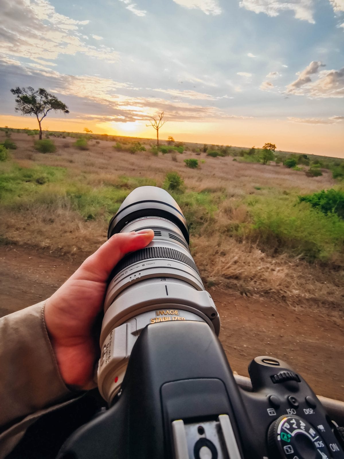 Auf der Suche nach einem geeigneten Objektiv war uns die große Flexibilität wichtig. Schließlich warten die Tiere nicht, bis Du ein Objektiv gewechselt hast. Gewöhnlich schleppst Du immer mehrere Objektive mit Dir rum. Eins für den Nahbereich, meist 18 bis 55 Millimeter und eines für die Ferne, meist 70 bis 200 Millimeter. Diese Zeit oder auch diesen Platz hast Du bei einer Safari aber nicht! Schnell fanden wir daher das Canon EF 28-300 mm (f/3.5-5.6L, IS USM).