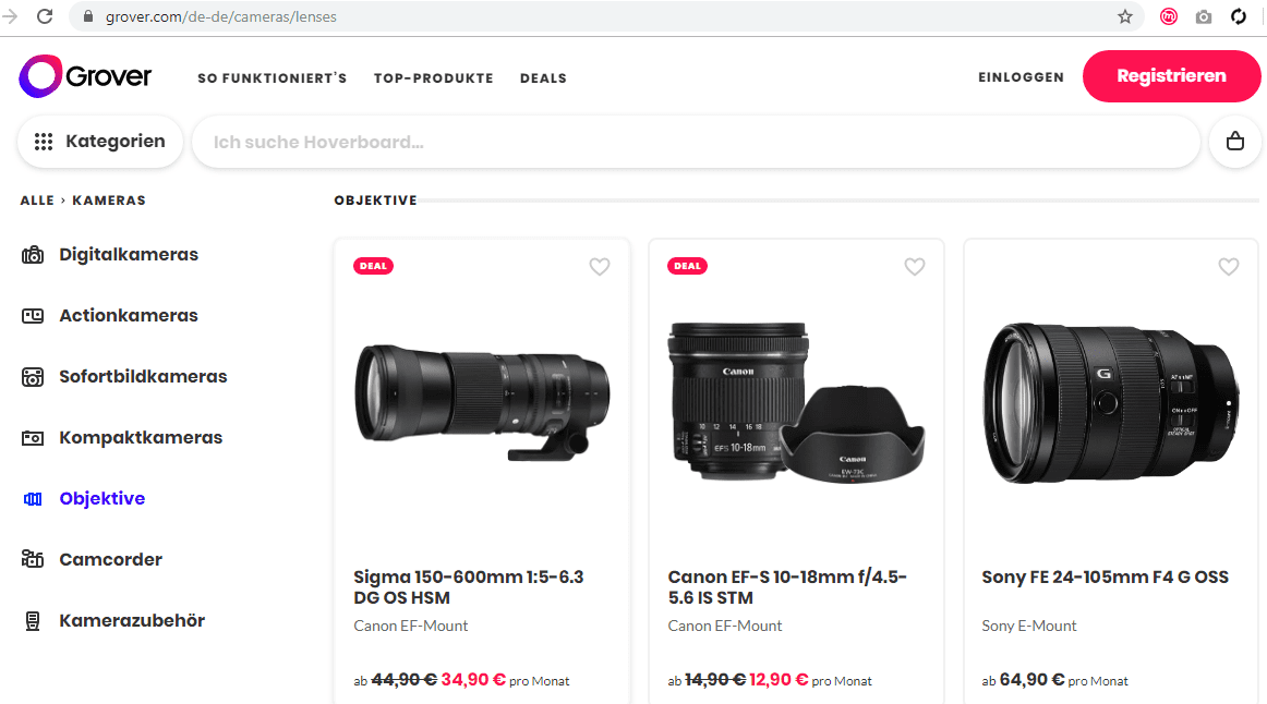 Du findest auf Grover alleine dutzende Objektive aller gängigen Marken.