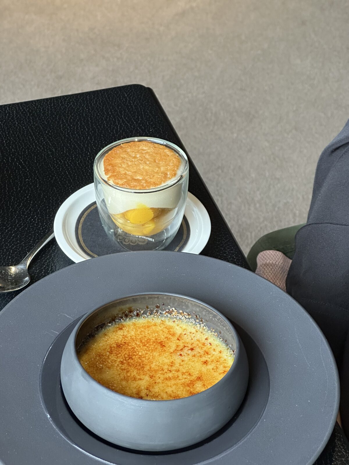 Zum Schluss kam eine Crème brûlée von der Tonkabohne mit exotischen Früchten und Crumble – cremig, fein und mit genau dem richtigen Spiel aus Süße, Frucht und Crunch. So ein Dessert, bei dem man nach dem ersten Löffel sofort weiß, dass man dafür Platz hätte lassen sollen. Begleitet wurde es von der Siefersheimer Heerkretz Riesling Spätlese 2024 von Wagner-Stempel – fruchtig, frisch und mit genau der Spannung, die ein süßes Finale braucht.