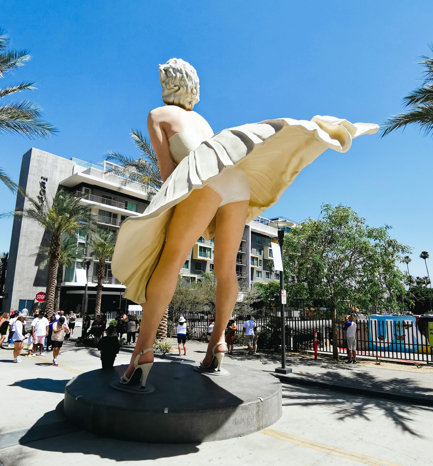 Sie ist wieder da! Die knapp acht Meter hohe Statue der weltbekannten Schauspielerin hat nun endlich (nach ihrer Tournee durch einige Städte der USA) ein festes zu Hause. Nachdem die Statue Opfer mehrerer nicht zeitgemäßer Anschläge wurde, erstrahlt sie nun am Rande des Zentrums in Palm Springs.