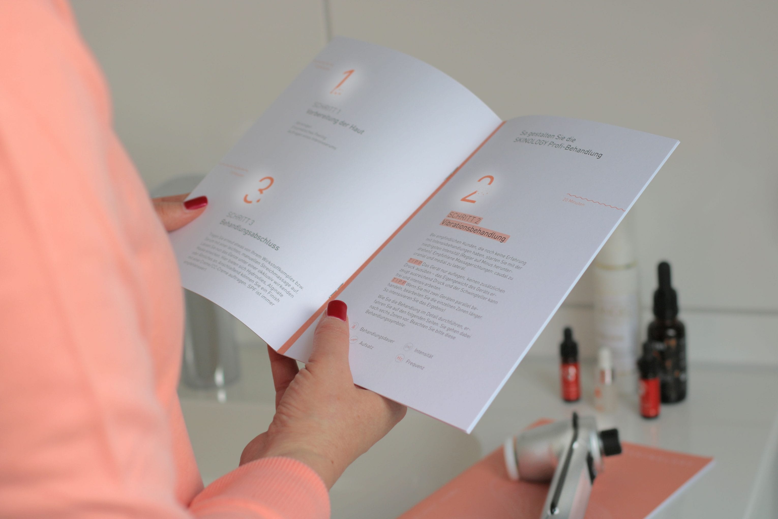 – Einarbeiten der Wirkstoffen mit dem SKINOLOGY pro in langsamen kreisenden Bewegungen. Immer von innen nach außen.