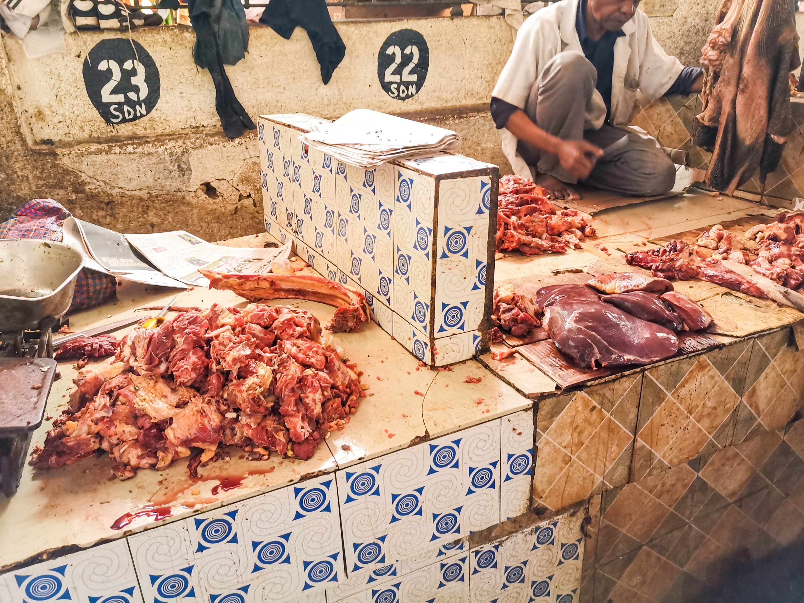Es wirkt für einen fast unglaublich, unter welchen Umständen bei der Hitze Fleisch und Fisch gehandelt wird. Immerhin kannst Du wohl ohne Bedenken Gewürze und Obst kaufen. Klar zahlst Du bei den Gewürzen den Touripreis, aber wenn Du weiß, was ein Gramm Safran bei uns kostet, dafür bekommst Du dort 100 Gramm. Etwas befremdlich mag es auch sein, dass man sich ein lebendes Huhn aussucht, was dann für Dich erst geschlachtet wird. Besonders interessant sind die Preisverhandlungen, die wie in alten Börsenfilmen wirken. Man ist eben auf einem richtigen Basar!