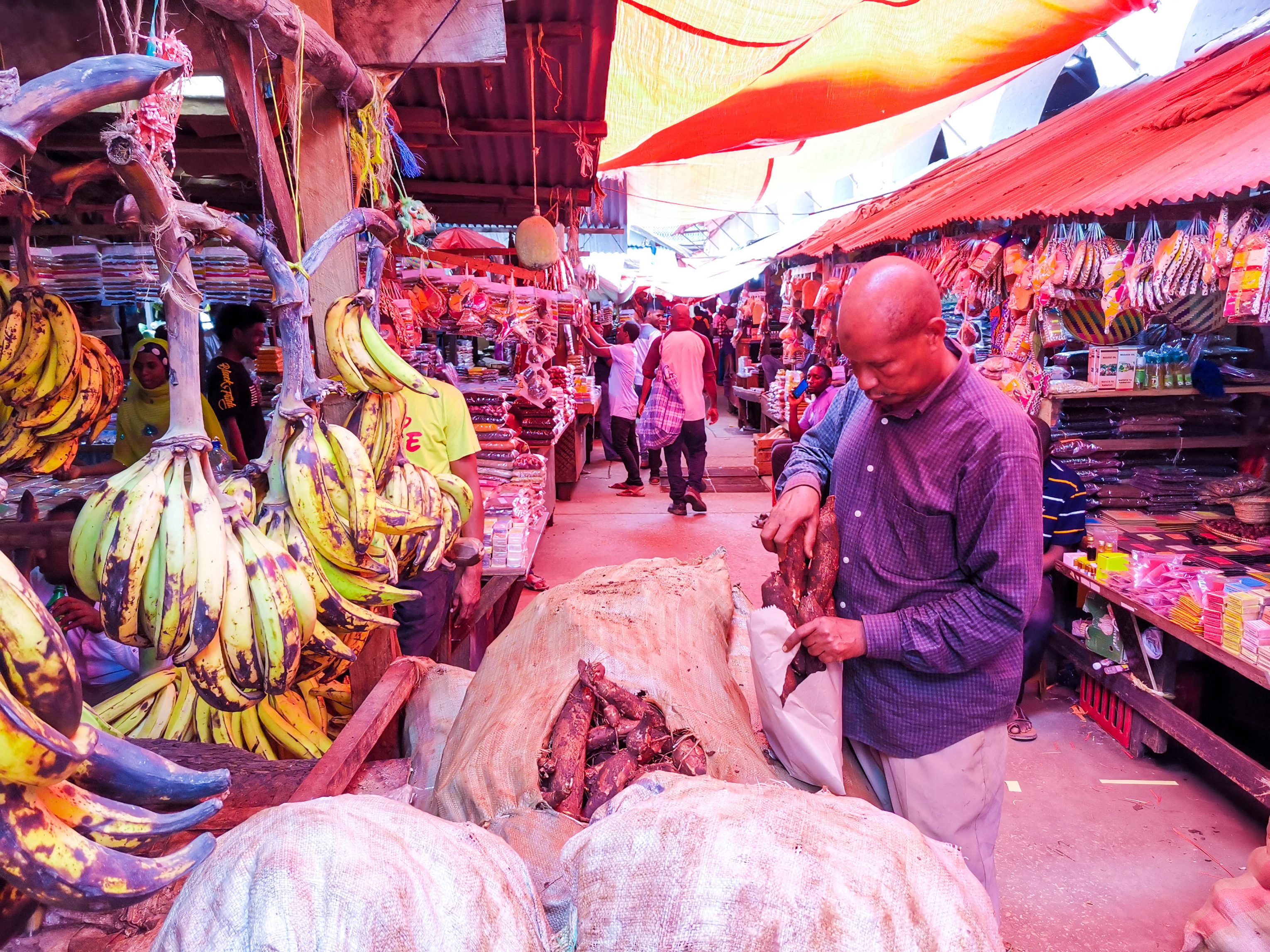 Der Darajani Markt ist der Hauptmarkt für Meeresfrüchte, Obst, Gemüse, Gewürze, Fisch, Fleisch und inzwischen auch Non-Food. Er ist umgangsprachlich auch als Marikiti Kuu bekannt, was auf Swahili wiederum Hauptmarkt heißt. Ein weiterer Name ist Estella Market (nach Countess Estella, die Schwester von Lloyd Mathews, dem Premierminister von Sansibar). Die große Markthalle wurde im Jahr 1904 von Bomanjee Maneckjee für Sultan Ali bin Hamud gebaut. Die Markthalle befindet sich in der Nähe der anglikanischen Kirche, in der Darajani Straße. Schau Dir dieses bunte Treiben an.