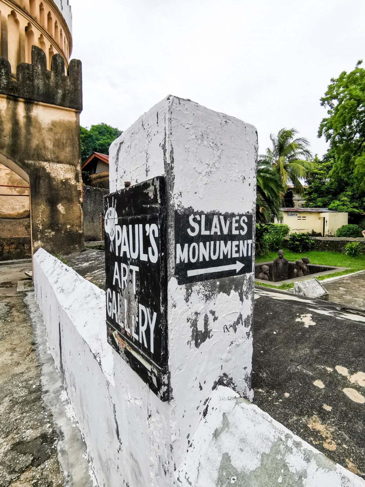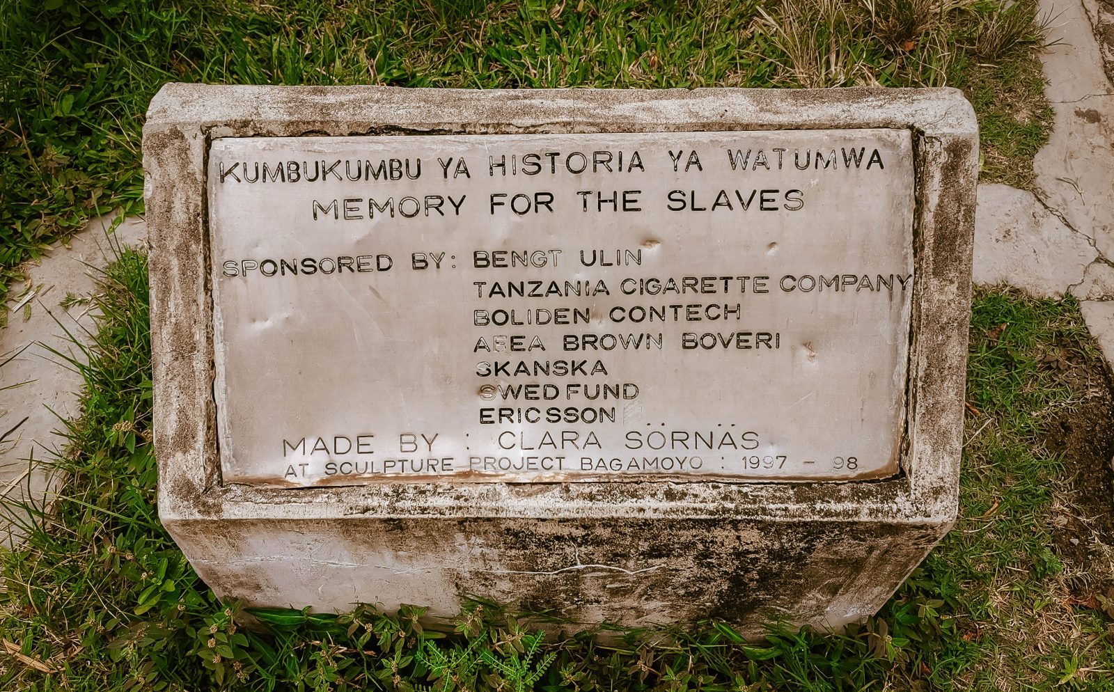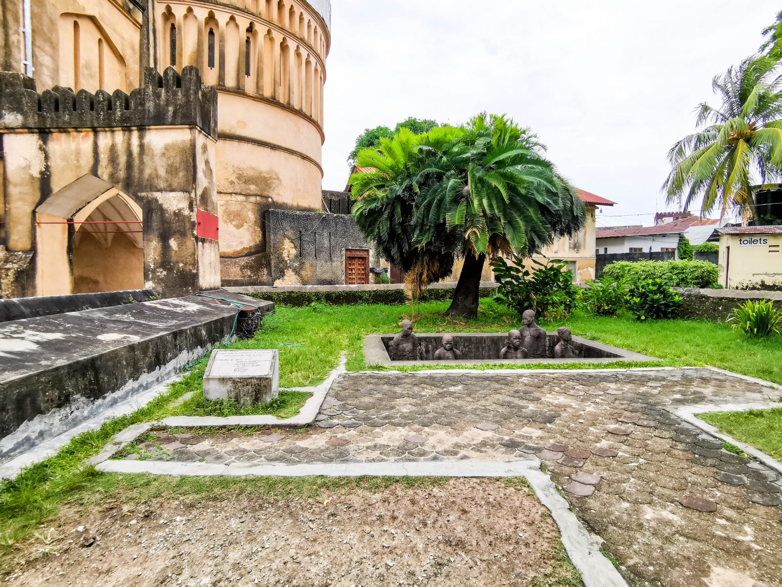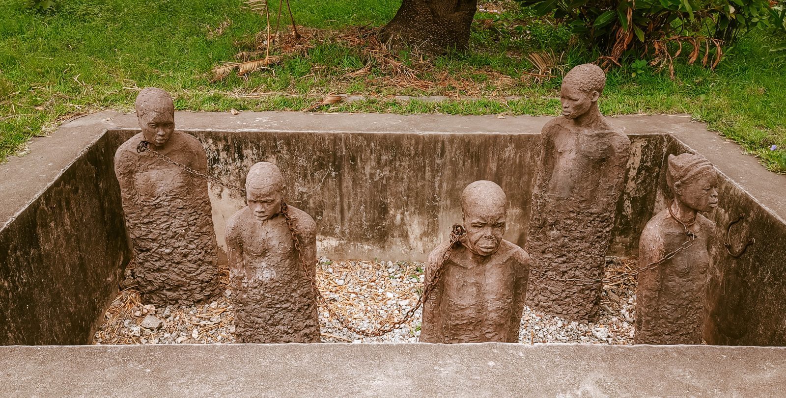 Noch vor etwa 150 Jahren war Sansibar der Hotspot des weltweiten Sklavenhandels. Unter der arabisch geprägten Herrschaft wurden Sklaven weltweit auf Plantagen, Bergwerke und Felder verteilt. Während man in Europa versucht, Denkmäler durch symbolisierte Szenarien wider zu geben, legte Clara Sörnäs wert auf die anschaulische Darstellung dieser grausamen Zeit. Das Denkmal ist etwas versteckt in den Außenanlagen der anglikanischen Kathedrale zu finden.
