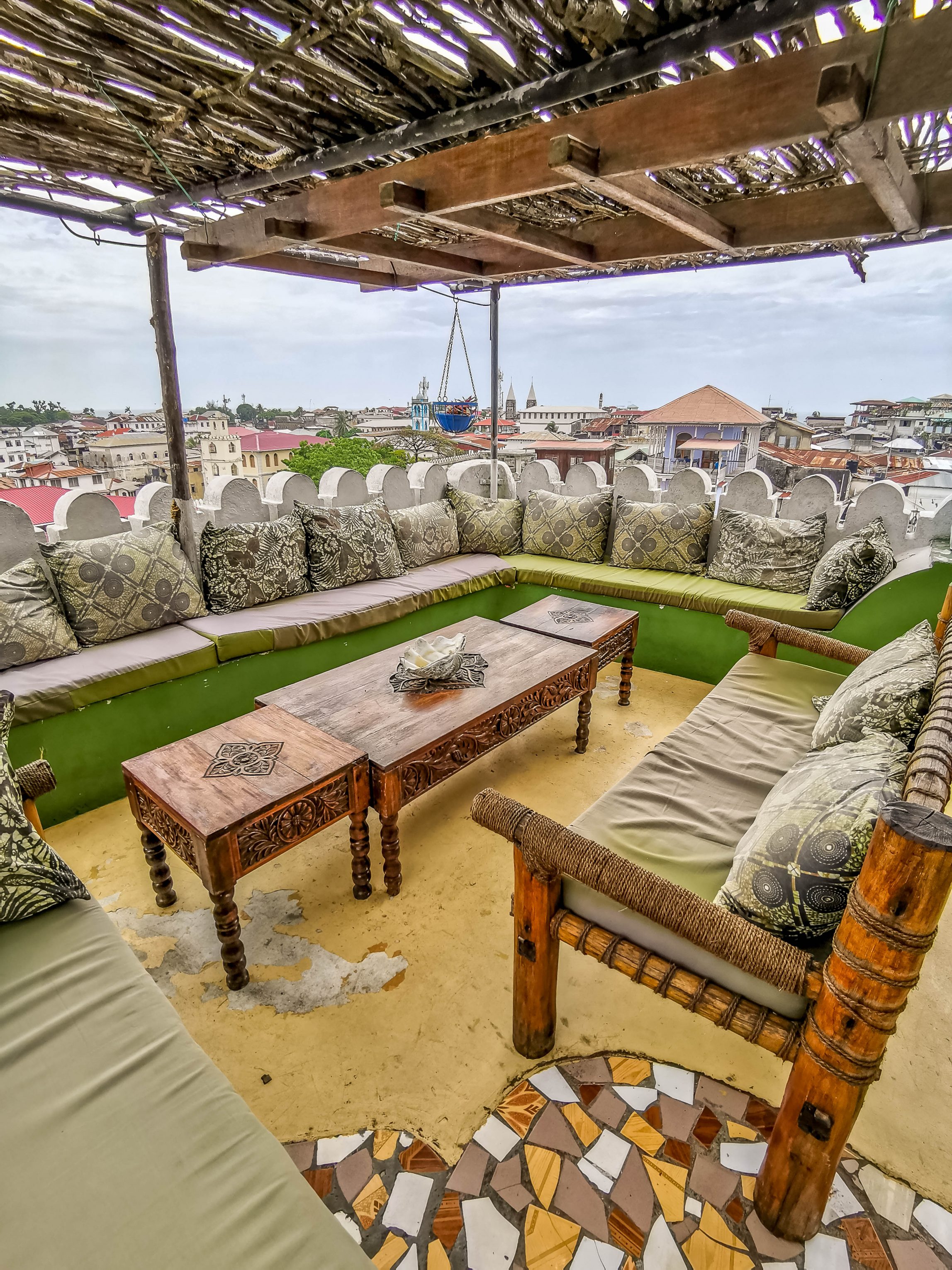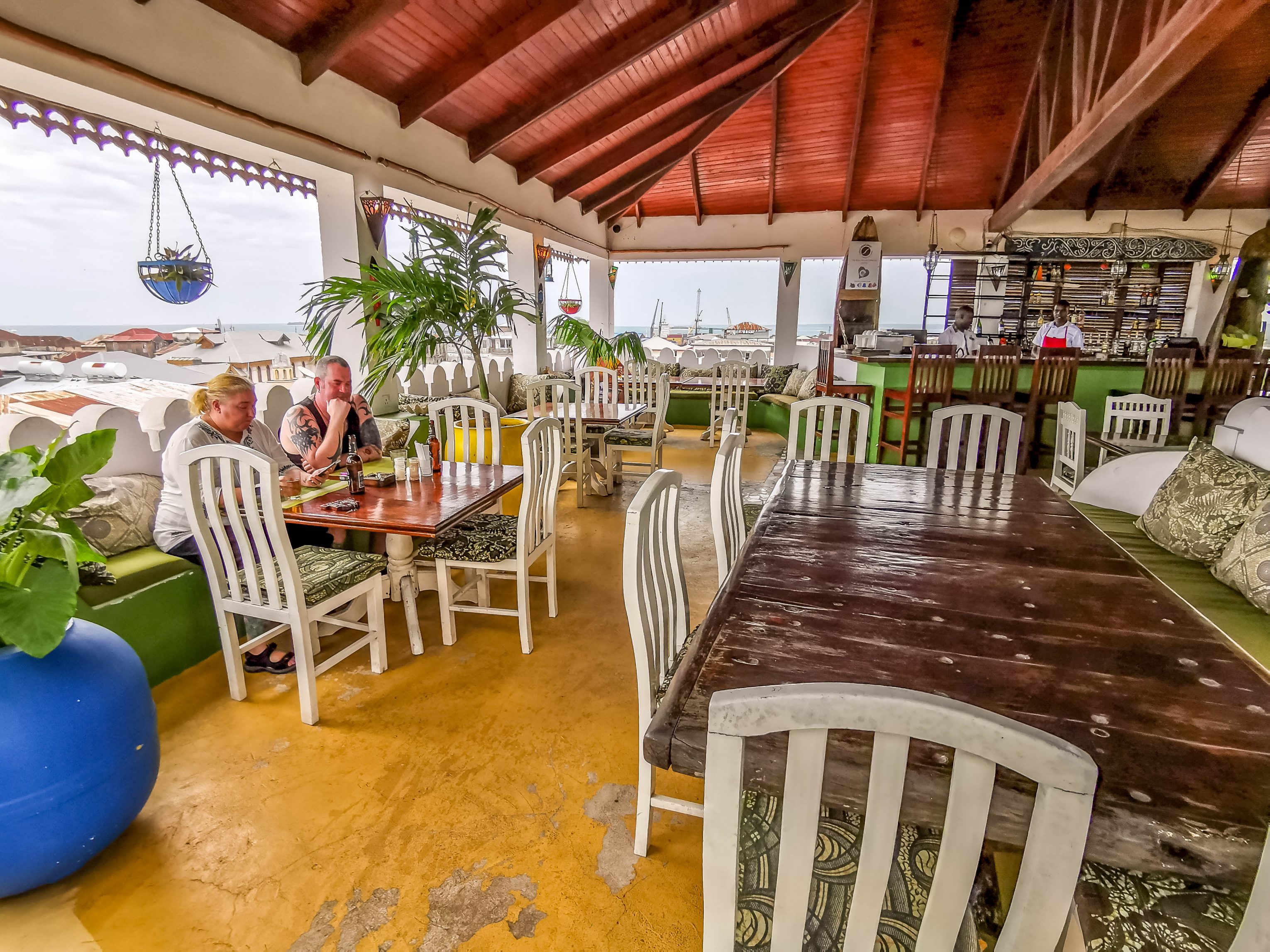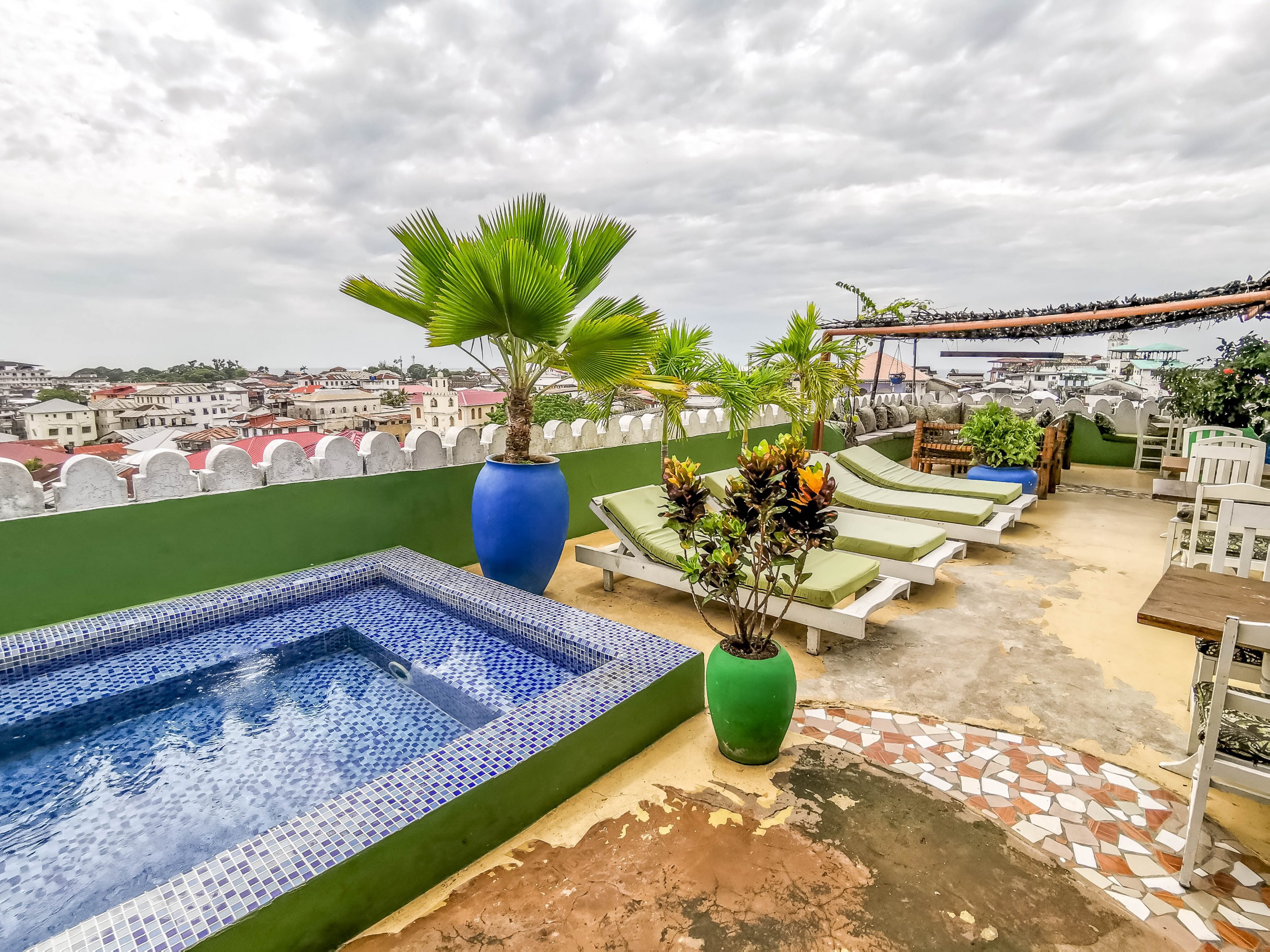 Hoch über den belebten Straßen von Stone Town befinden sich auf dem luftigen Dach eine Bar und ein geräumiger Restaurantbereich. Hier kannst Du Frühstück, Mittagessen, einen Cocktail oder ein Abendessen genießen, während Du einen atemberaubenden Blick auf die Altstadt und die Suaheli-Küste hast. Auf der Dachterrasse befinden sich außerdem ein entspannender Tauchpool und ein Sonnendeck mit Blick auf den Indischen Ozean.