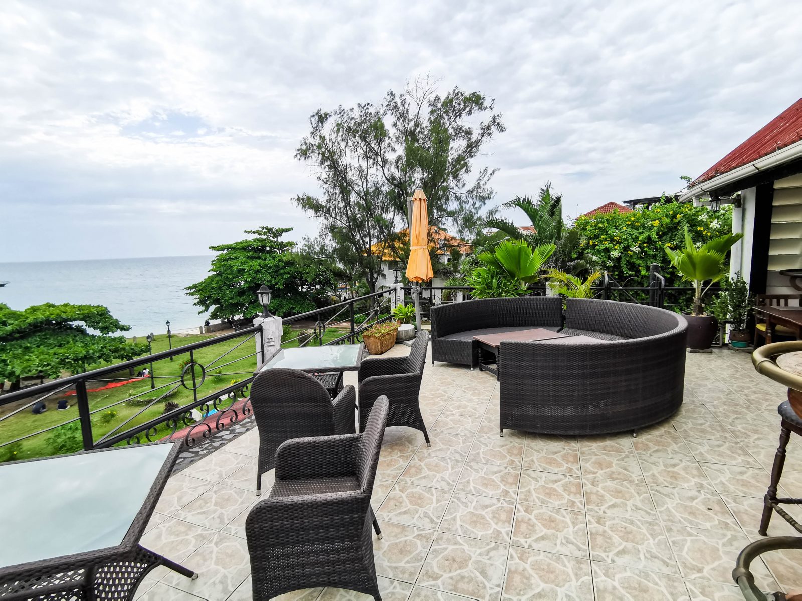 Die Restaurants und die Terrasse sind frei zugänglich. Auch hier sind die Preise bezahlbar. Im Hintergrund kann man auch das schwimmende Dreamer’s Island Hotel sehen. Natürlich kannst Du auch hier einen fabelhaften Sonnenuntergang über dem indischen Ozean erleben.
