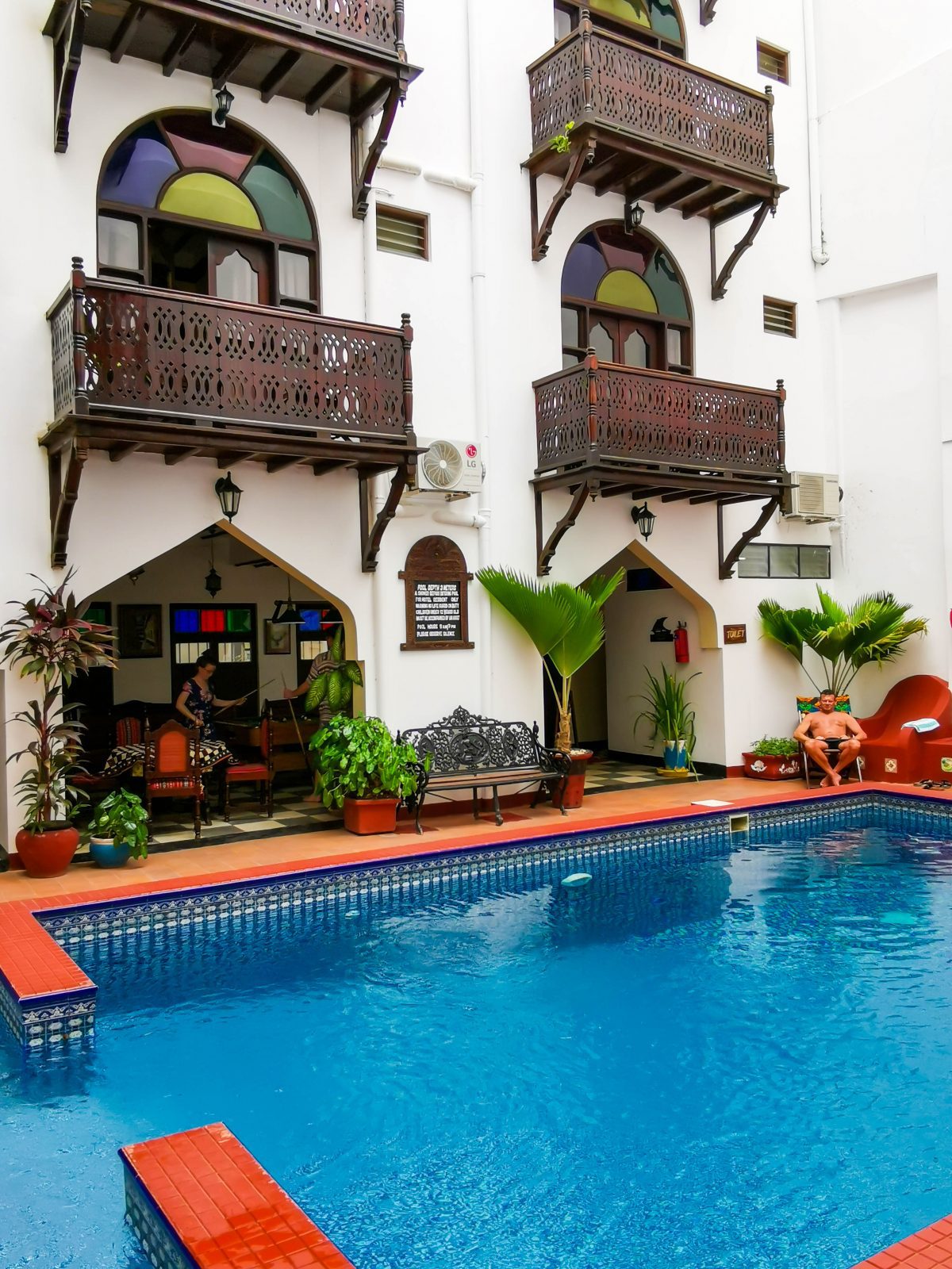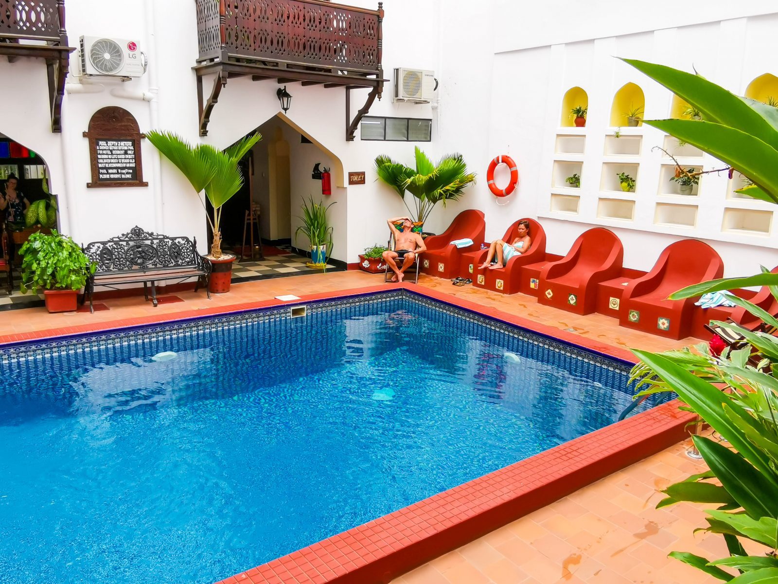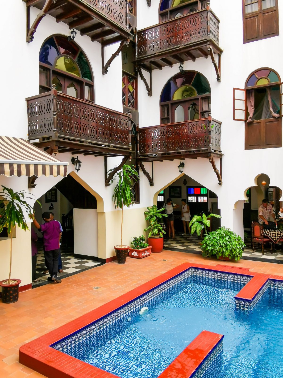 Im geschäftigen Herzen von Stone Town befindet sich das Swahili House – traditionelle Suaheli-Einflüsse und authentische Gastfreundschaft kombiniert mit modernen Einrichtungen. Das Swahili House (Suaheli-Haus) wurde ursprünglich im 19. Jahrhundert als indisches Handelshaus eingerichtet und genutzt. In den darauf folgenden 125 Jahren wurde das Gebäude zu einem Heim für eine der vielen Sultansfamilien, die Sansibar bewohnten. Der größte Teil des Hotels wurde in seinen ursprünglichen Zustand versetzt, was Deinen Aufenthalt im Suaheli-Haus zu einem echten Sansibar-Erlebnis macht! Das beeindruckende Gebäude hat fünf Stockwerke, die alle um einen schönen traditionellen Sansibar-Hof herum gebaut sind. Das Hotel bietet 23 Zimmer, die sich auf vier Etagen verteilen. Zur Ausstattung gehören: vier Sultan-Suiten – große, geräumige Zimmer mit Balkon 19 Deluxe-Zimmer – Standard-Doppel- oder Zweibettzimmer Alle Zimmer sind mit Deckenventilatoren, Moskitonetzen und Klimaanlage ausgestattet. Jedes Zimmer hat ein eigenes Badezimmer mit warmem und kaltem Wasser, Seife, Shampoo, Handtüchern und Wasserflaschen.