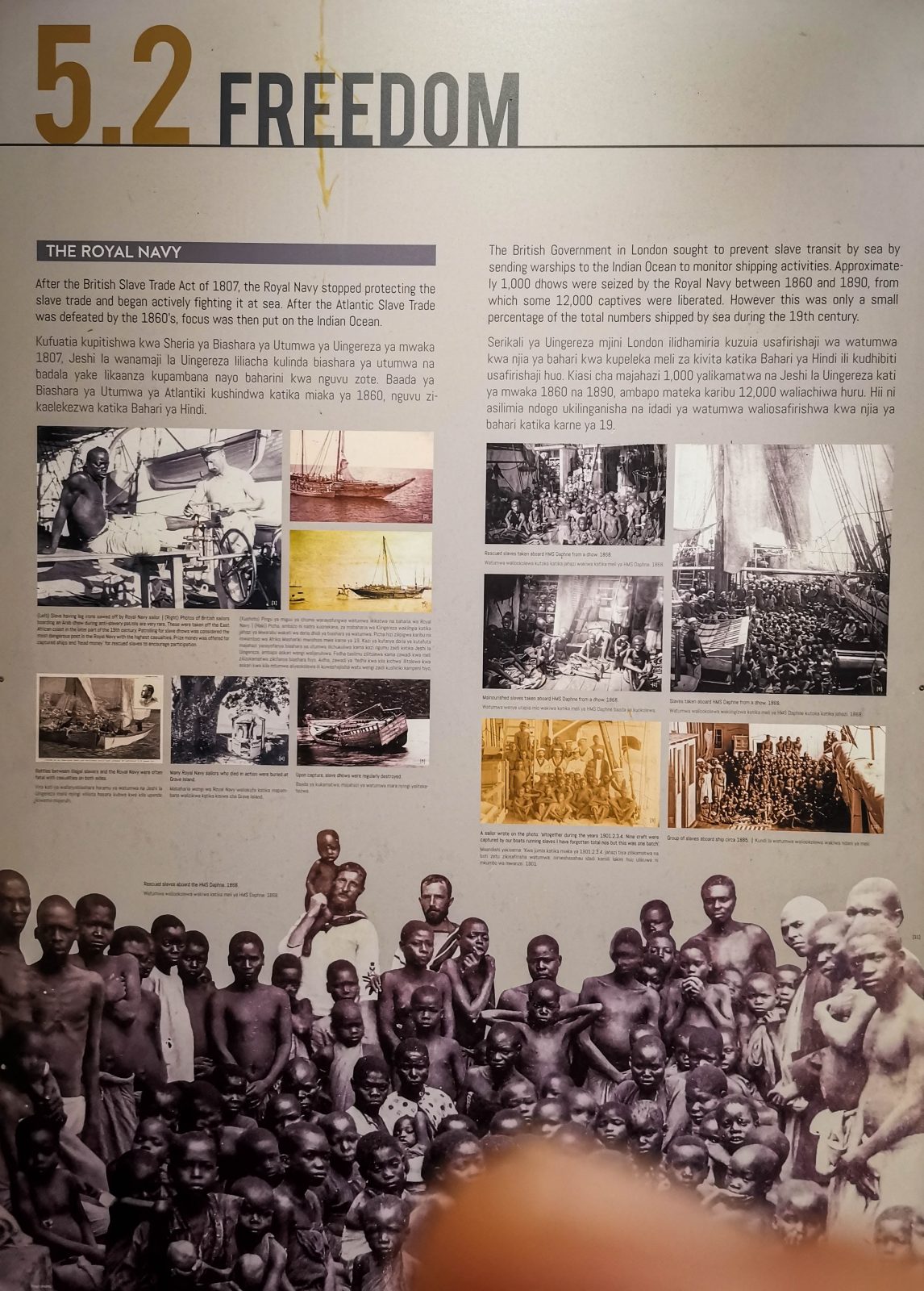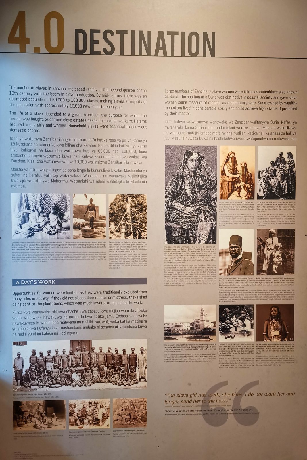 Vom 17. bis 19. Jahrhundert wurden Sklaven hauptsächlich für Plantagen im Süd-Irak, Amerika und Europa gehandelt. Da die Westküste Afrikas nur bedingt den damaligen Markt stillen konnte, konzentrierten sich die Sklavenjagden hauptsächlich auf Ostafrika. In dieser grausamen Zeit wurden so ganze Völker vernichtet. Unter dem Sultan von Oman entwickelte sich Sansibar neben Lamu und Pate zu den Hotspots des damaligen Sklavenhandels. Namen, wie die des Sklavenhändlers Tippu-Tip sorgten damals für Angst und Schrecken.