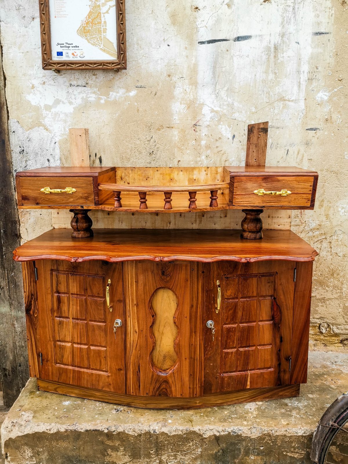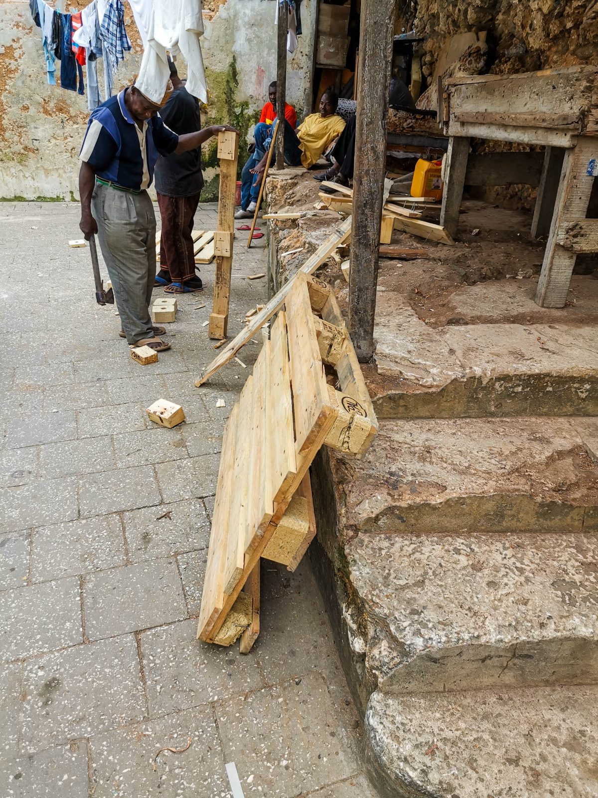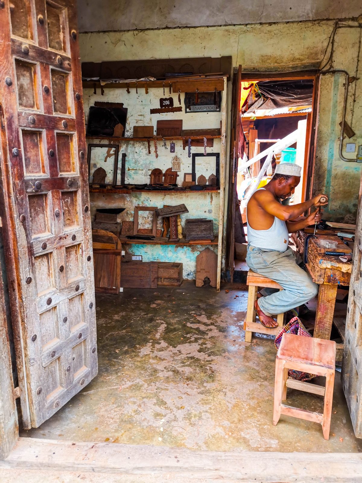 Ein Schreiner käme auf Sansibar kaum noch aus dem Staunen heraus. Wenn man sieht, was die Sansibaris mit primitivsten Mitteln für hochwertige Möbel, Türen und Fenster erschaffen. Als Grundlage dient meist Treibholz, Dhowholz oder sogar Europaletten. Mit Handbohrer und Hacke werden die guten Stücke in Form geschafft. Selbst mit unseren Maschinen wäre diese Kunst unbezahlbar.