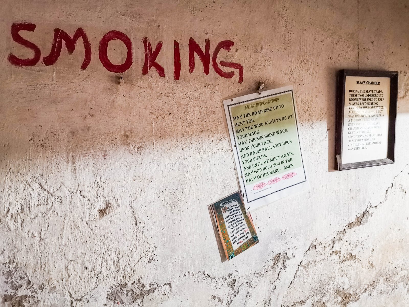 Heute zeugt ein Museum der anglikanischen Kirche am ehemaligen Sklavenmarkt von dieser dunkeln Zeit. Auf großen Tafeln sind die Ereignisse chronologisch dargestellt. Letztlich hast Du auch Zutritt zu den beiden Abfertigungsräumen. In diesen beiden wenigen Quadratmetern großen Räumen wurden die Sklaven auf ihre Verschiffung vorbereitet. Die Räume sind so niedrig, dass niemand stehen konnte. Hunderte Sklaven warteten so gleichzeitig auf ihre Abholung.