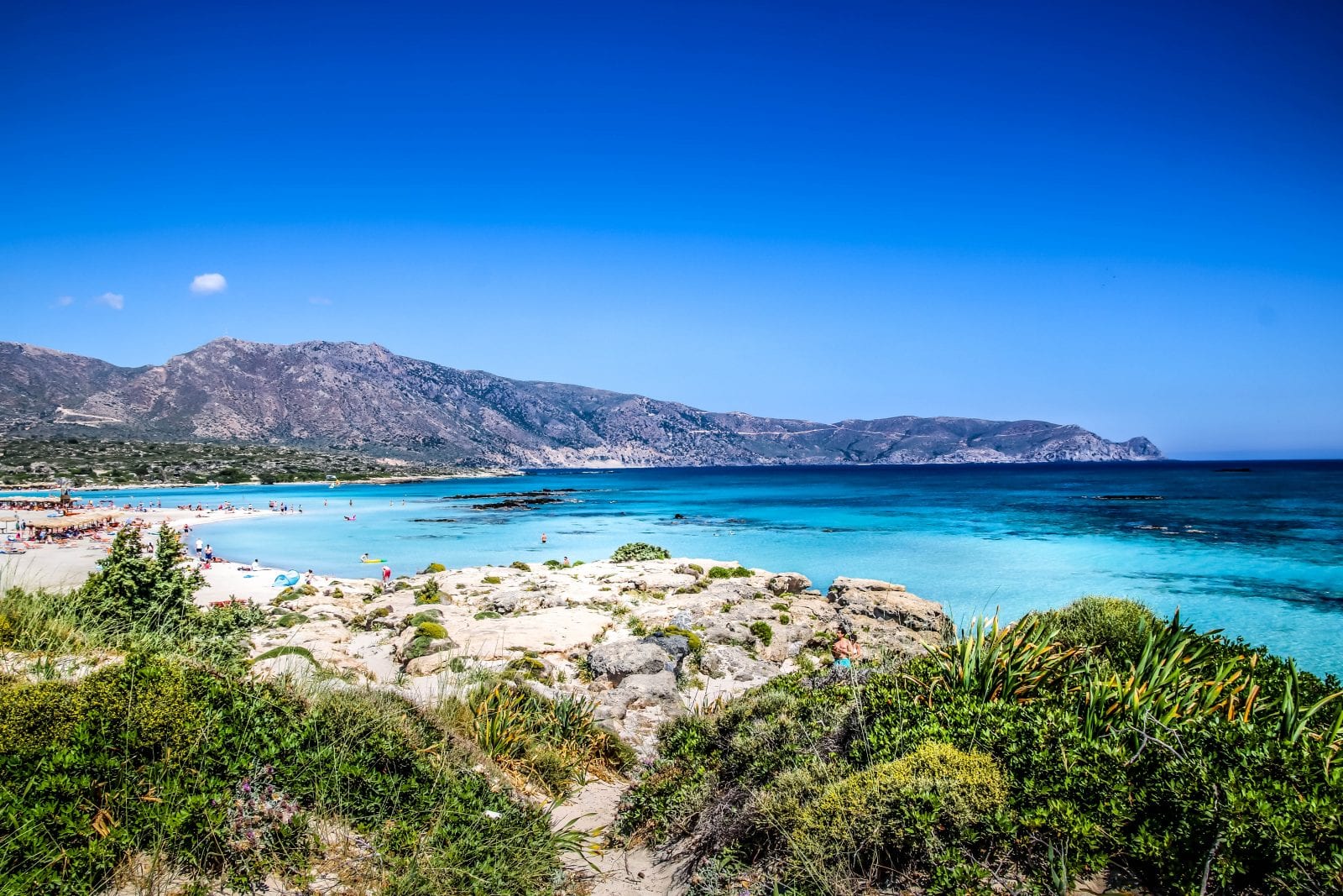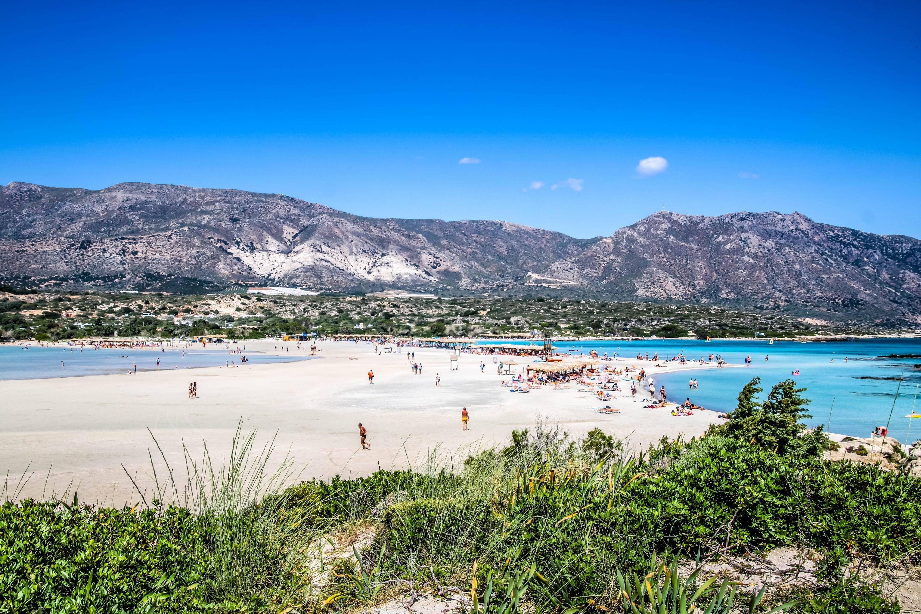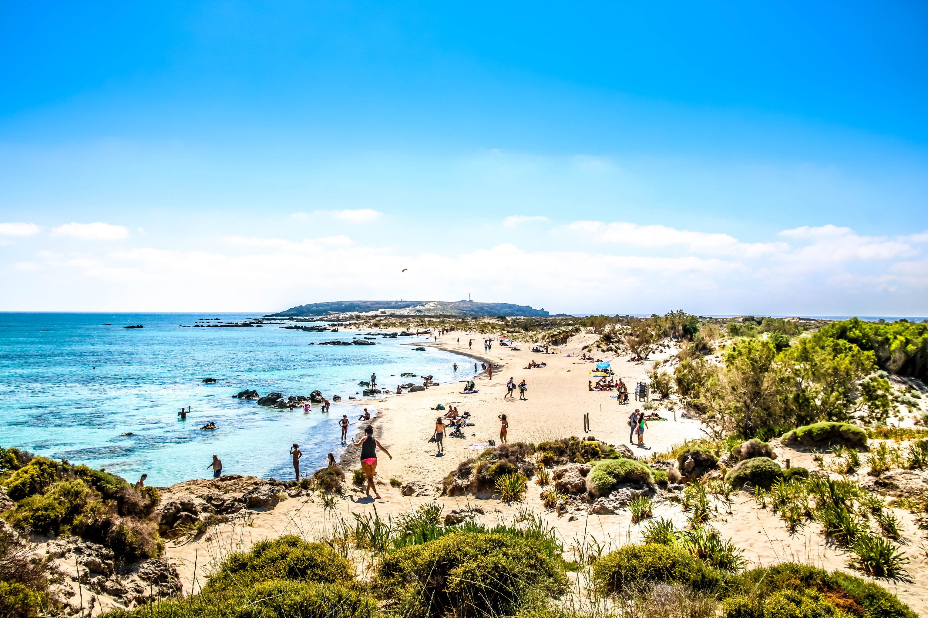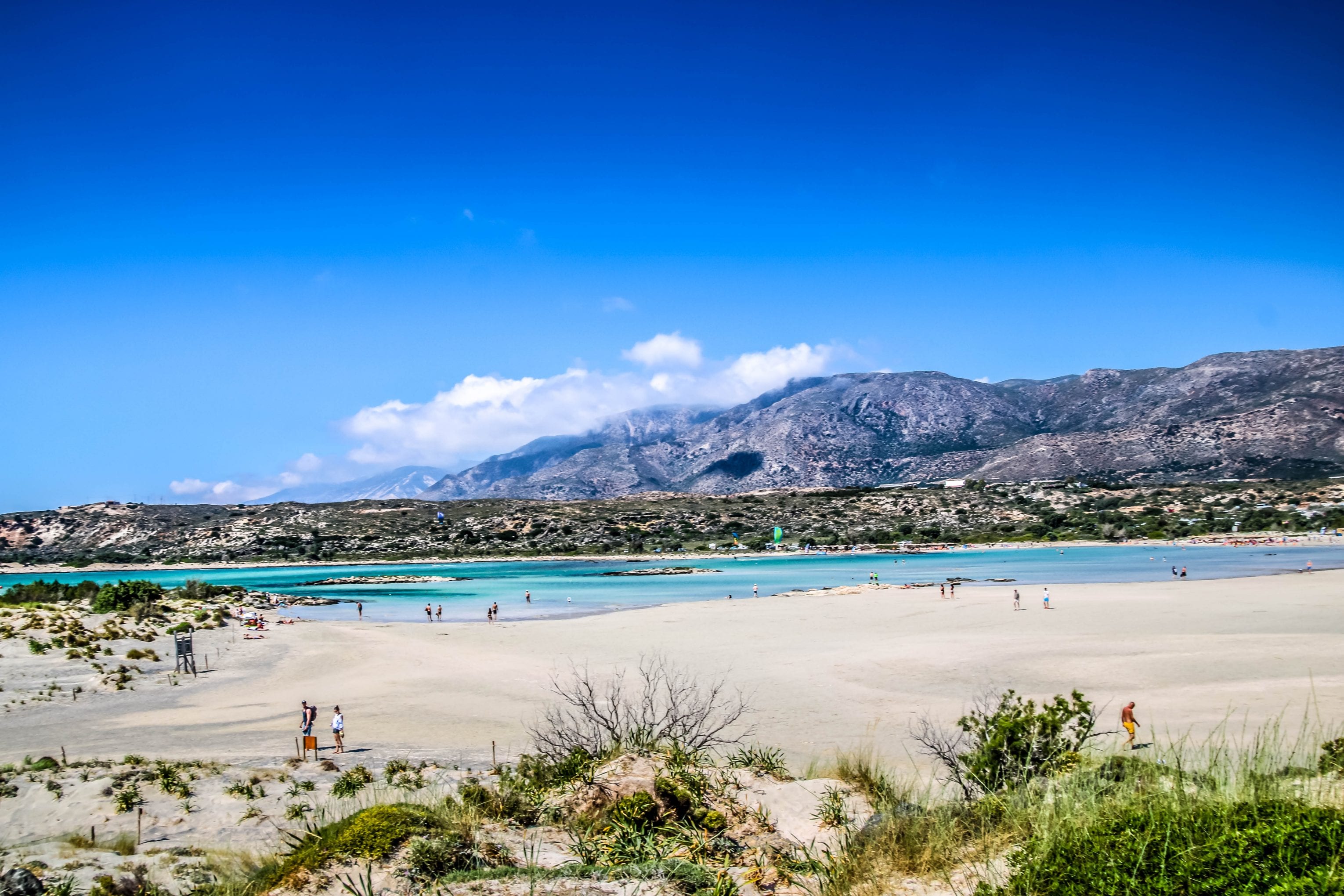 Die kleine Insel Elafonissi ist durch eine bis zu 350 Meter breite Sandbank mit Kreta verbunden. Je nach Wetterlage und Jahreszeit ist diese breiter oder schmaler. Die Nordseite ist sehr flach und prima für Kinder geeignet. Auf der Südseite kann man auch gut im kristallklaren Wasser schwimmen.