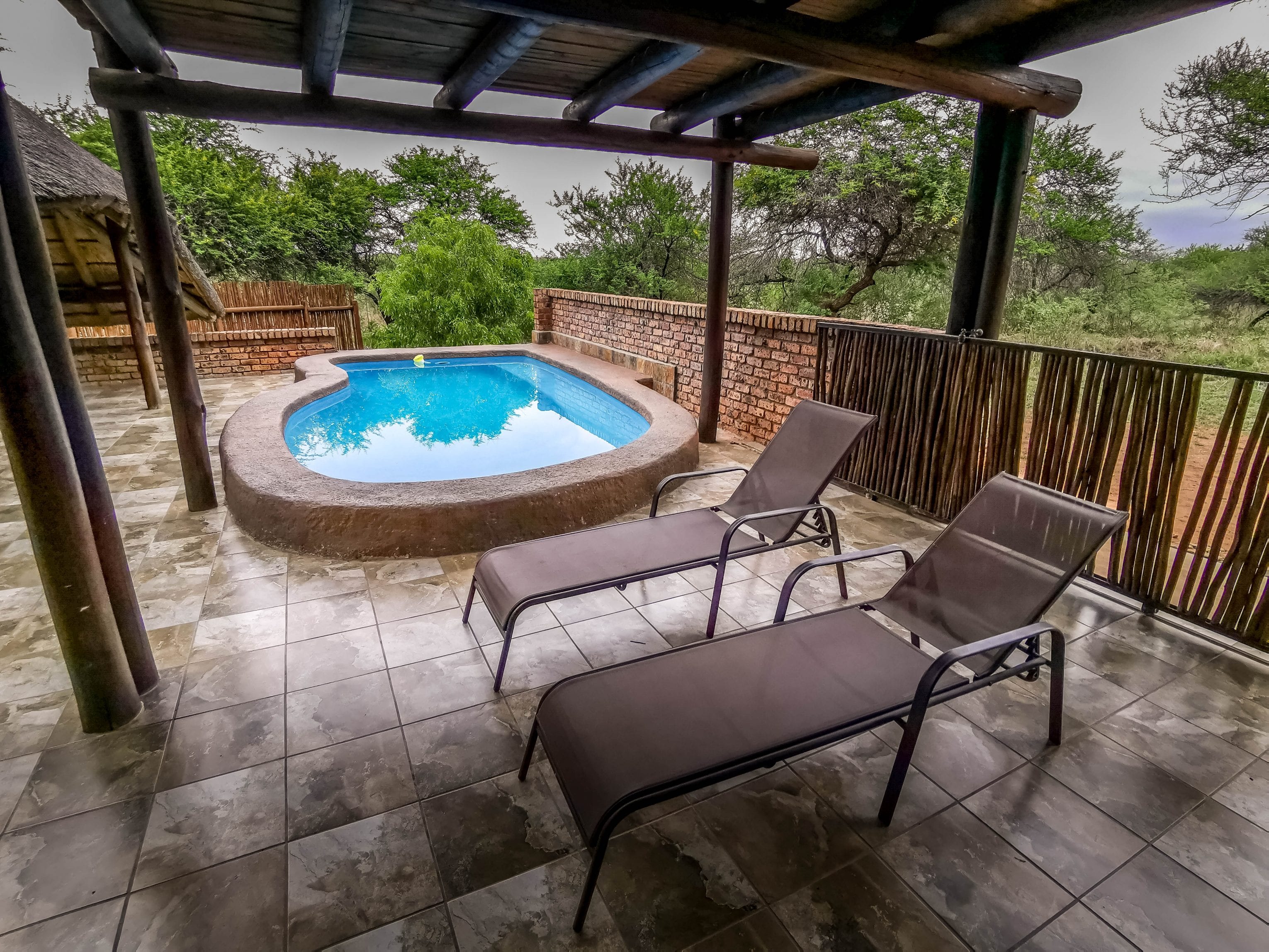 Wenn es mal richtig heiß ist, bringt Dir der kleine Pool in der Giraffe Plains definitiv Abkühlung. Die Terrasse verfügt über Sonnenliegen, einen Grill und eine Überdachung mit Tisch und Stühlen. Lass allerdings immer das Gatter geschlossen, denn schließlich liegt das Haus offiziell in der Big Five Area.