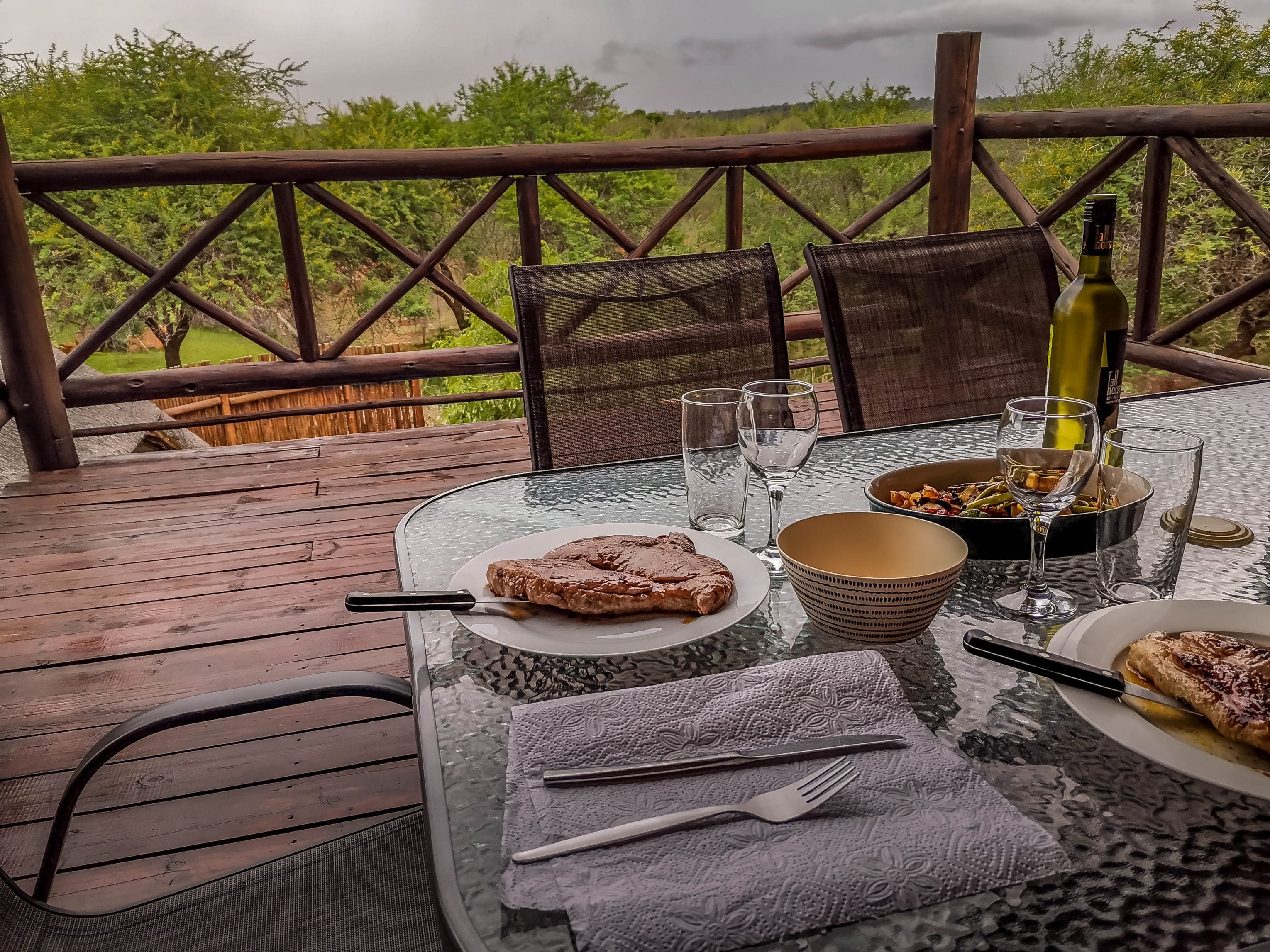 Ein ganz besonderes Highlight ist der große Balkon aus Holz. Hier bist Du sicher vor wilden Kreaturen und kannst nebenbei die Aussicht genießen. Wenn Du Dir dann noch etwas kochst und eine gute Flasche südafrikanischen Wein gönnst, dann weißt Du, was das besondere an diesem Haus ist!