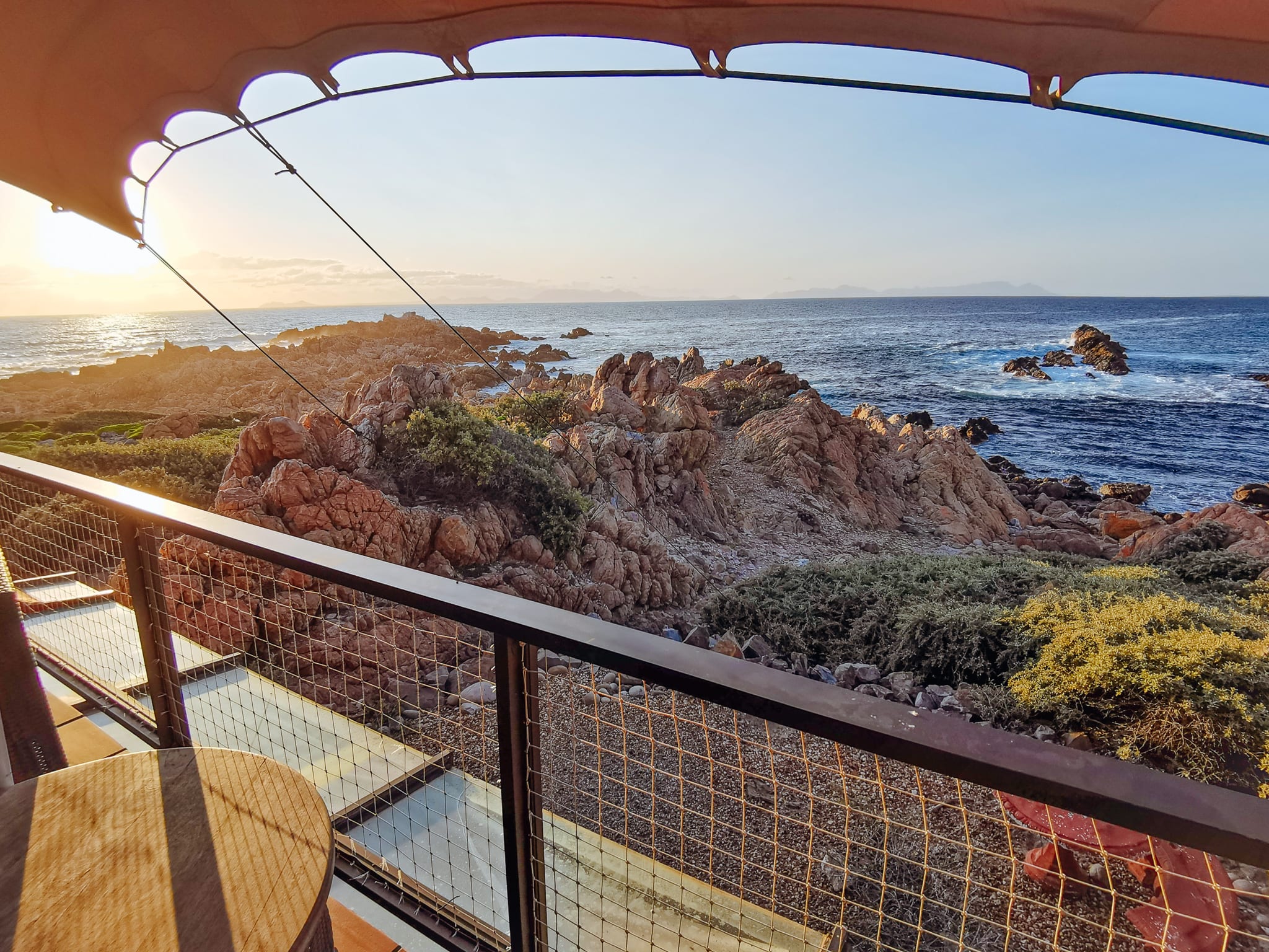Dieser Sonnenuntergang ist wohl unbezahlbar! Wenn Du genau hinschaust siehst Du am Horizont zwei Hügel, etwas rechts der Sonne. Das ist das Kap der guten Hoffnung! Einer der bekanntesten Orten der Welt und das vom Küchenfenster aus.