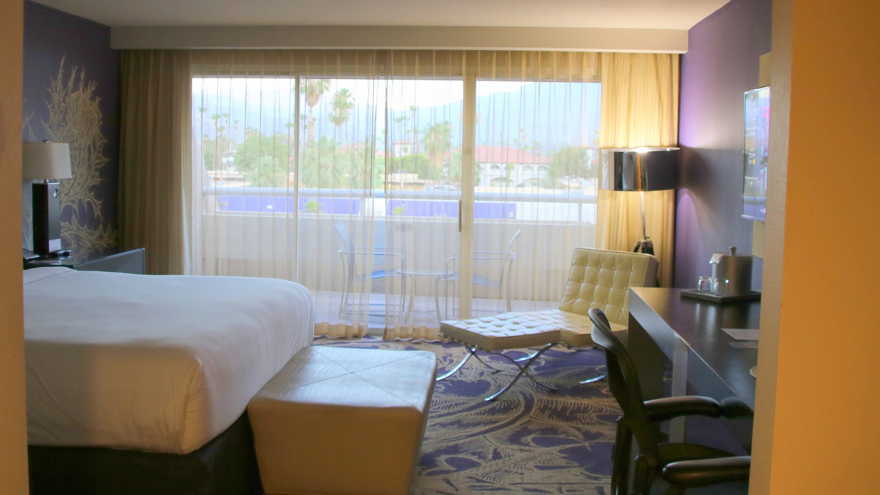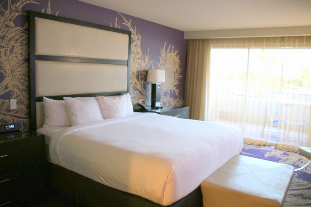 Das Zimmer selbst ist sehr geräumig und für die USA ungewöhnlich sauber. Man hat einen ungestörten Blick aufs Gebirge und die Hotel eigene Poolanlage. Auch wenn es schon auf den Fotos geräumig wirkt, wird es der wahren Größe leider nur bedingt gerecht. Dies ist unter anderem dem riesigen Boxspringbett geschuldet. Möchte man in Ruhe die heiße Wüstensonne genießen, ist der große Balkon eine gute Alternative zum Pool.