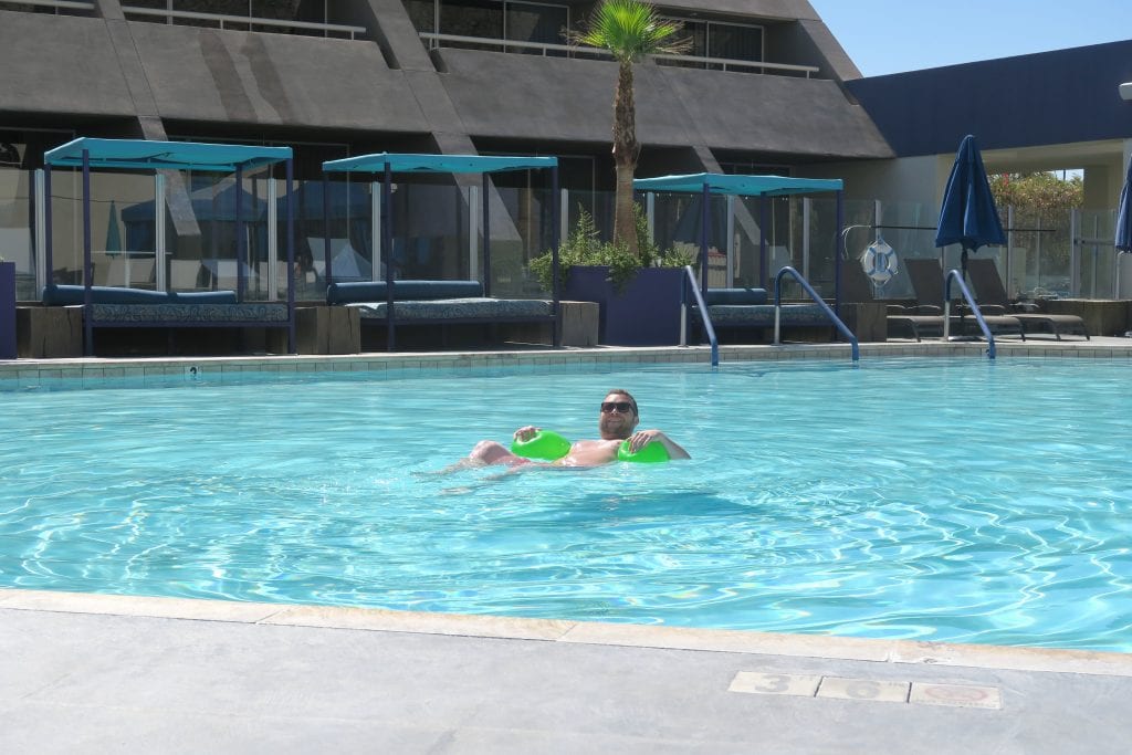 Ich bin ein eindeutiger Whirlpoolfan, das merkt man auch schnell bei mir zu Hause, doch was diese Poolanlage inmitten der Wüste bot, war unbeschreiblich … heiß! Der Whirlpool hatte gefühlte 100°C, ok realistisch gesehen wohl etwa 45°C. Selbst der Pool war so warm, dass vorherige Abduschen lediglich den Zweck erfüllte, nicht zu überhitzt ins Wasser zu springen. Wie Du auf den Fotos siehst, gab es garantiert keinen Handtuchkrieg und das an seiner so traumhaften Poolanlage!