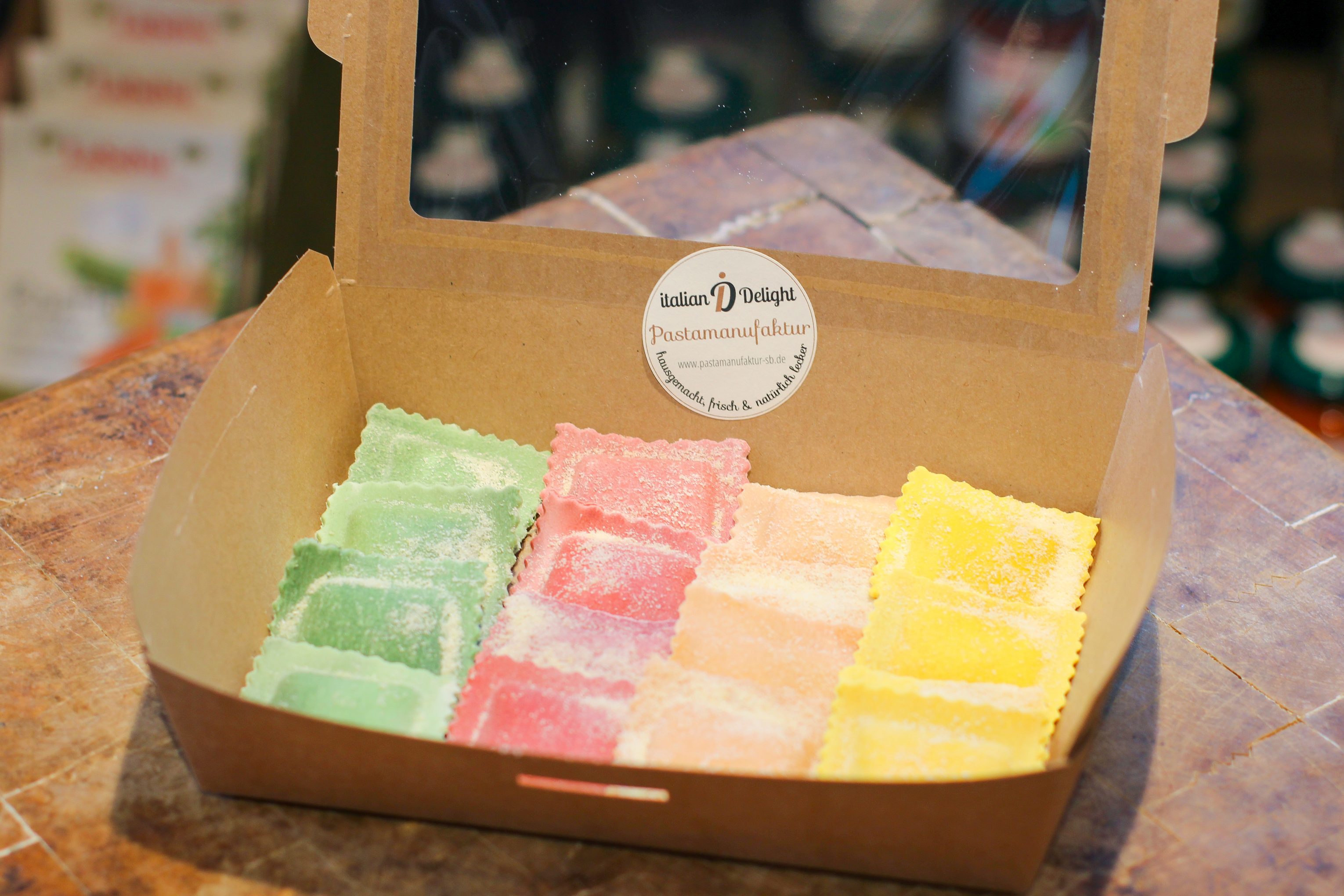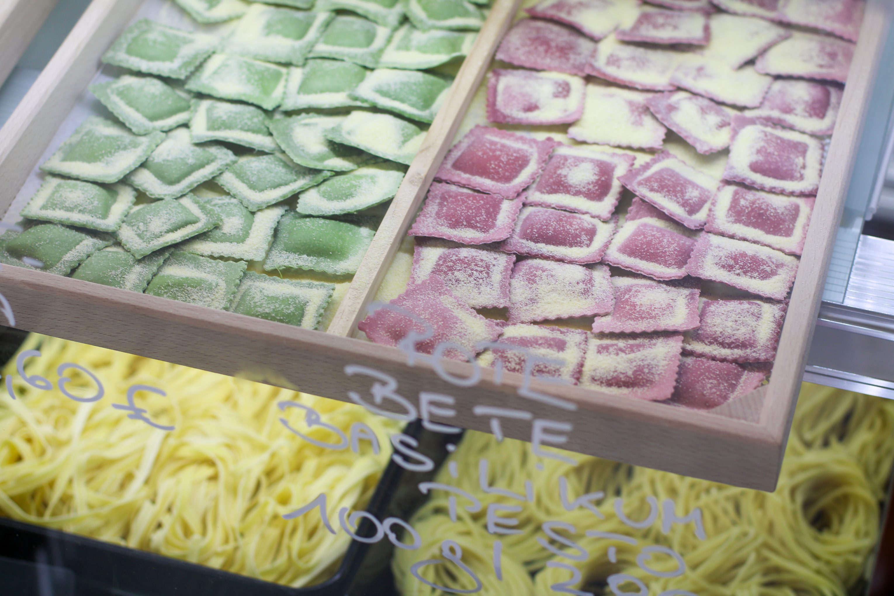 Ich selbst war von der Kreativität überwältigt. Es gibt wirklich Pasta, die einem nach dem Genuss in Erinnerung bleibt. Neben festen Bestandteilen im Trocken-Sortiment, wie Kastanie-Fusilli, Rote Linse Casarecce, Gnocchetti Sardi,… gibt es auch saisonale oder tagesaktuelle Kreationen. Trockene Pasta beginnt hierbei ab 1,- Euro pro 100 Gramm. Persönlich finde ich die frische Pasta aber noch viel interessanter. Solche Pasta ist das Highlight auf der nächsten Familienfeier – Bestimmt! Aber mal ehrlich, gönn sie Dir auch mal selbst! Sorten wie mit Rote Bärlauchpesto (Bio) gefüllte Ravioli oder frische Gnocchi multicolori verwöhnen auch Deinen Gaumen. Das gesamte Pastasortiment findest Du hier: