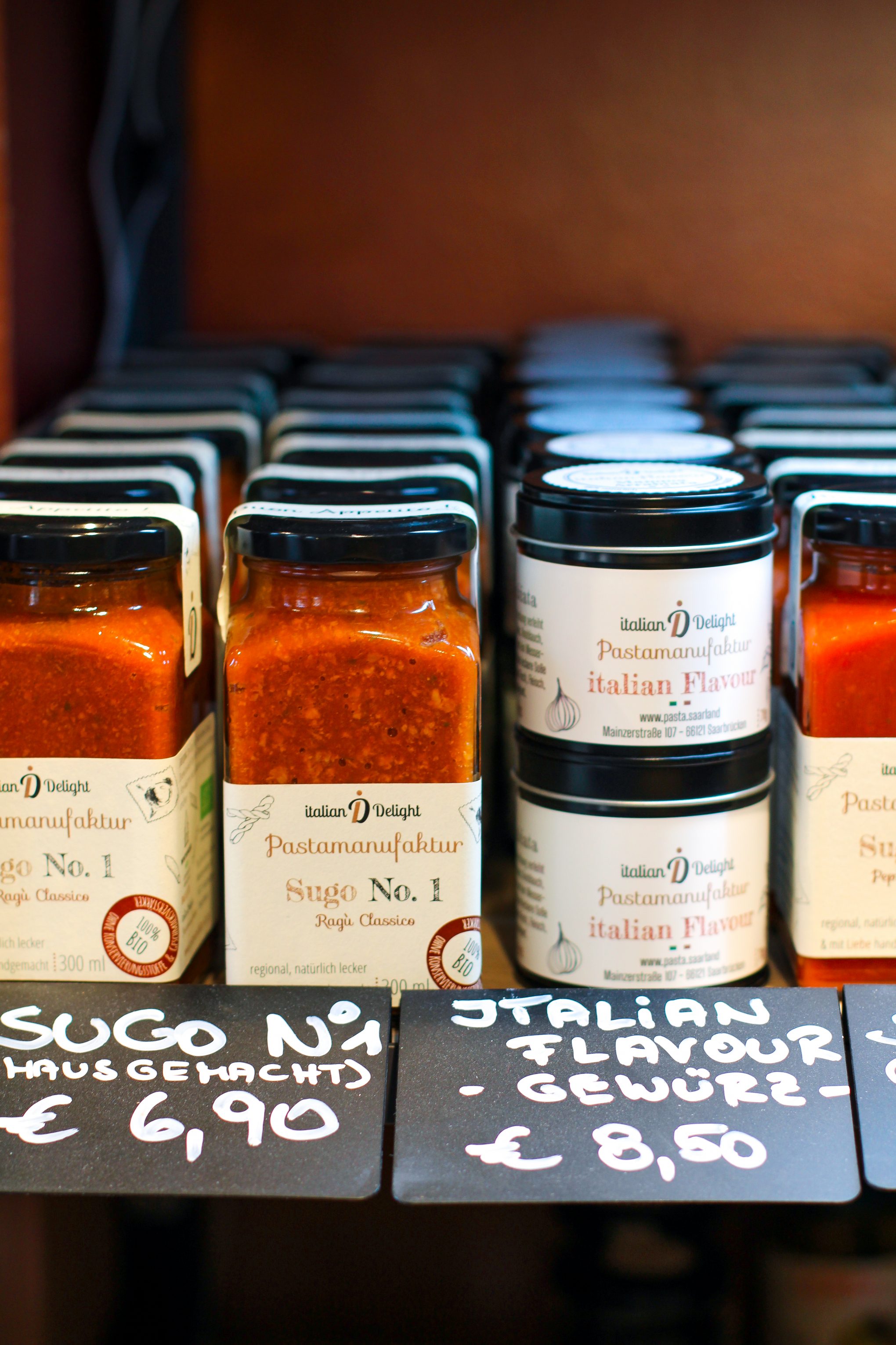 Auch wenn Du nicht aus Saarbrücken bist, kannst Du online einkaufen. Tina Bonaffini Caputo bietet im eigenen Onlineshop ein abwechslungsreiches Teilsortiments ihres Ladens an. Du musst aber verstehen, dass nur trockene Pasta versendet werden kann. Beim Vor-Ort-Termin unterstrich Tina Bonaffini Caputo allerdings auch deutlich, dass ihr der Umweltgedanke stark am Herzen liegt. Bewusst wurde ihr dies, als ihr Konzept in den Medien vorgestellt wurde und ein Kunde aus der Hauptstadt einige Kreationen bestellen wollte. Das Grundkonzept baut auf Regionalität, folglich widerspricht ein Onlineshop also erst einmal diesem Gedanken. Denn auch in Berlin gibt es bestimmt, kleine Läden mit eigener hochwertiger Produktion und da möchte man nicht selbst mit diesem lokalen Geschäft in den Wettbewerb treten. Fraglich ist es daher, 500 Gramm Nudeln, 800 Kilometer durch die Republik zu versenden. Daher der Apell! Wenn schon aus der Ferne bestellen, dann muss sich auch der Weg für die Ware lohnen und eben nicht nur 500 Gramm beinhalten.