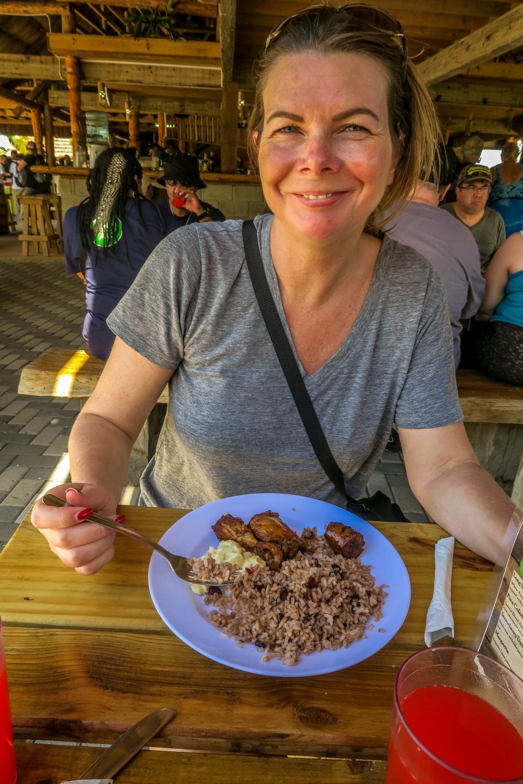 An der Bootsstelle Ayin Ha gab es nach der Tour noch eine Mahlzeit. Die belizianische Küche ist für Europäer gut verträglich. Es gab Reis, Hähnchen und Gemüse. Natürlich gab es auch bei Wunsch eine scharfe Sauce. Dafür, dass man auf der Carnival Splendor den ganzen Tag eh nur am Essen ist, reichte diese Mahlzeit für den langen Landausflug auf jeden Fall aus.