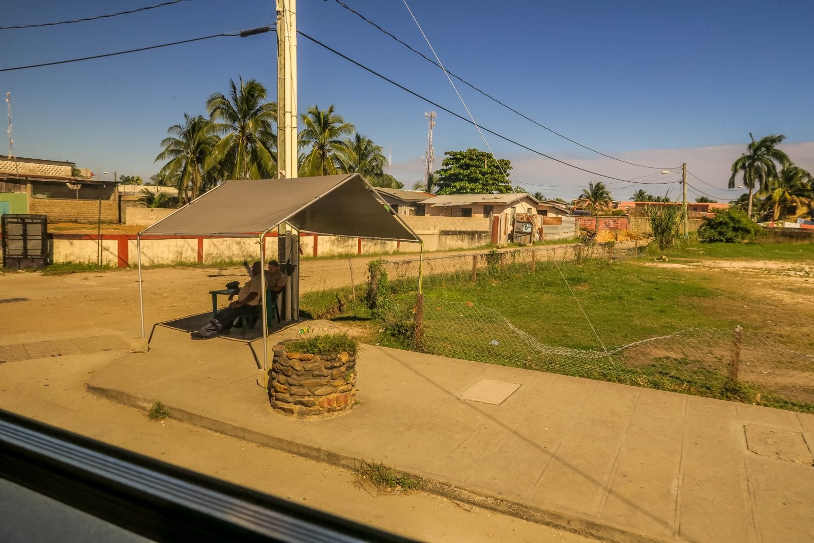 Mitten in der Savanne steht plötzlich eine große weiße Kuppel mit Mauern und Türmen drumherum. Hierbei handelt es sich um das belizianische Gefängnis. Fast alle Inhaftierten sollen Argentinier sein. Sei’s drum, wenn einer ausbricht, kümmert sich die Natur um ihn.