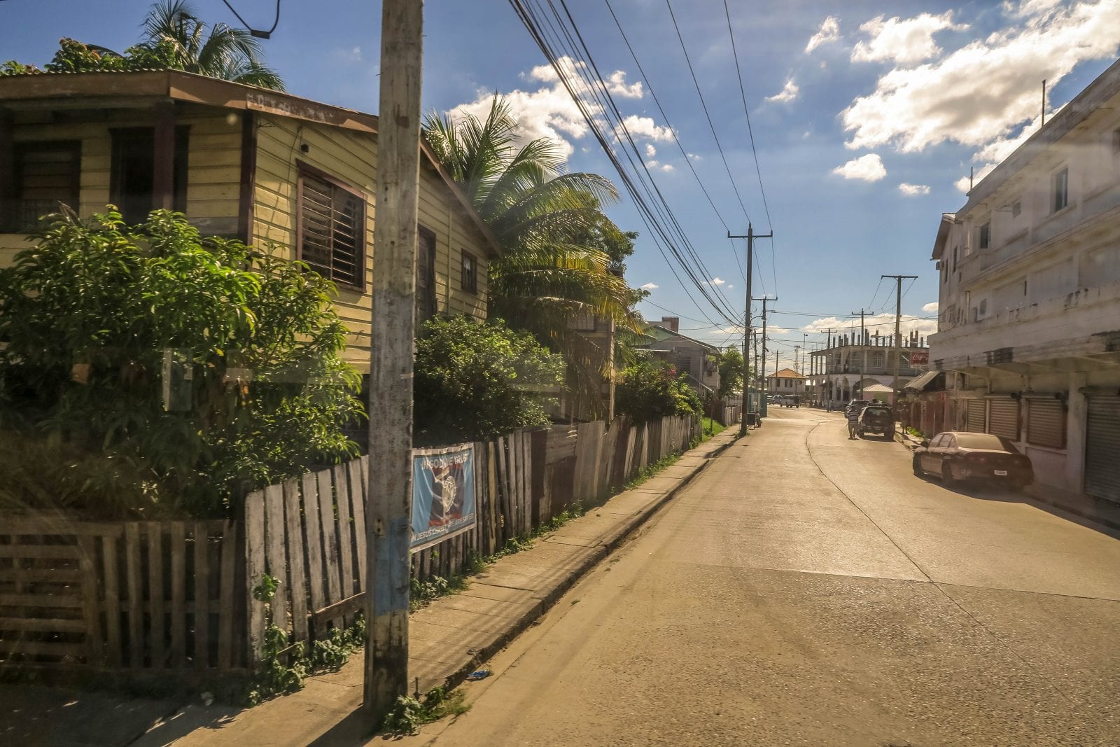 Die ersten Meilen fuhr unser grüner Schulbus von Belize Stadt Richtung Nord-Westen. Es erstaunt nur wenig, dass Belize wenig urbanisiert ist. Zum Glück, so entstanden sehr eindrucksvolle Momentaufnahmen. Auch wenn die Bilder ein wenig an verrufene Townships erinnern, ist Belize im Generellen relativ sicher.