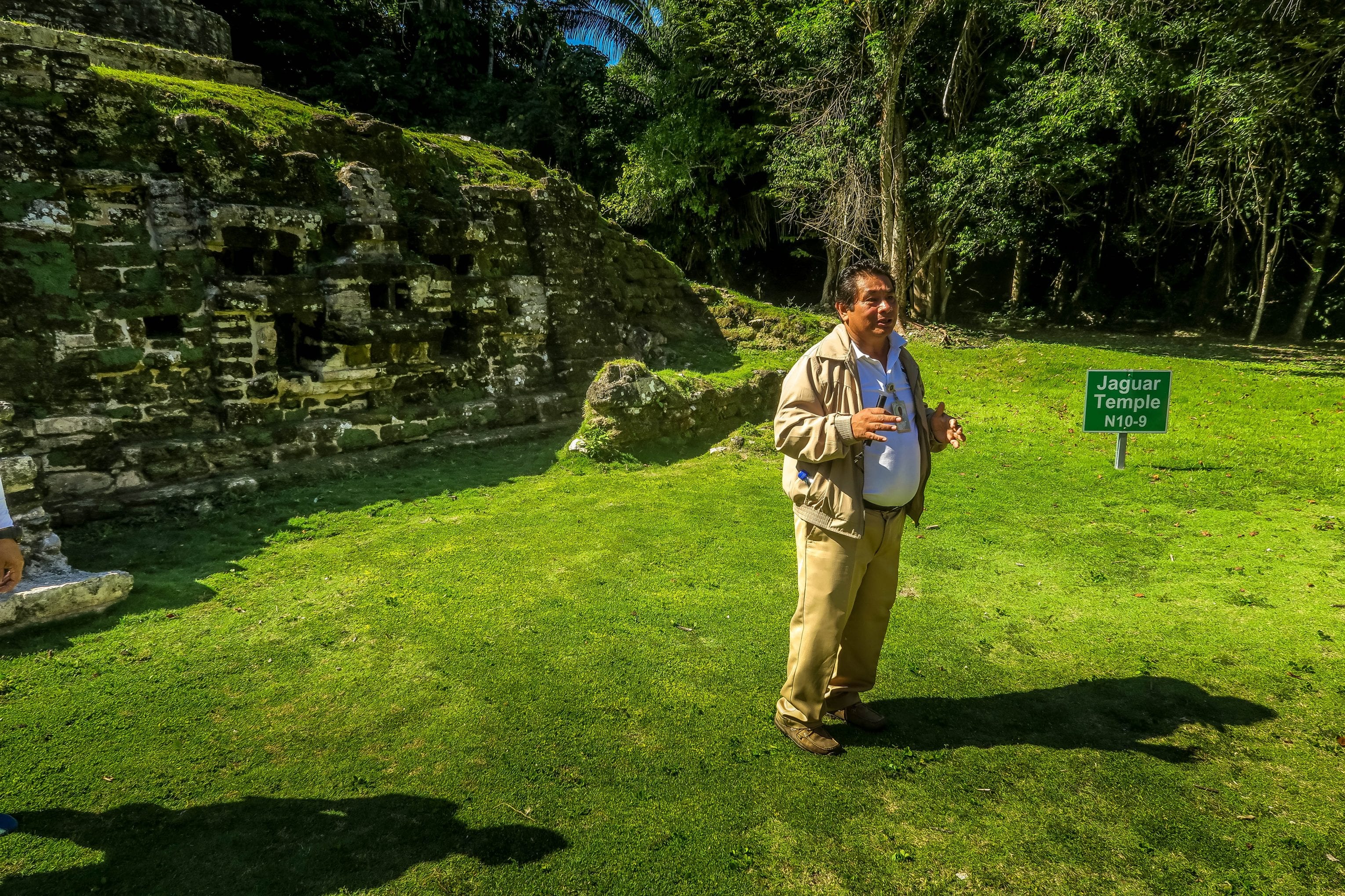 Lamanai, was in etwa so viel bedeutet wie “untergetauchtes Krokodil” beherbergte einmal bis zu 20.000 Einwohner. Selbst als im 16. Jahrhundert die Spanier Belize erreichten, wurde dieser mystische Ort am New River noch immer bewohnt. Über 3000 Jahre war Lamanai besiedelt, wobei die Hochzeit im 7. Jahrhundet stattfand. Herr Ku ist einer der letzten originalen Maya Belizes. Er setzt sich seit vielen Jahren für die Erforschung seiner Vorfahren ein.