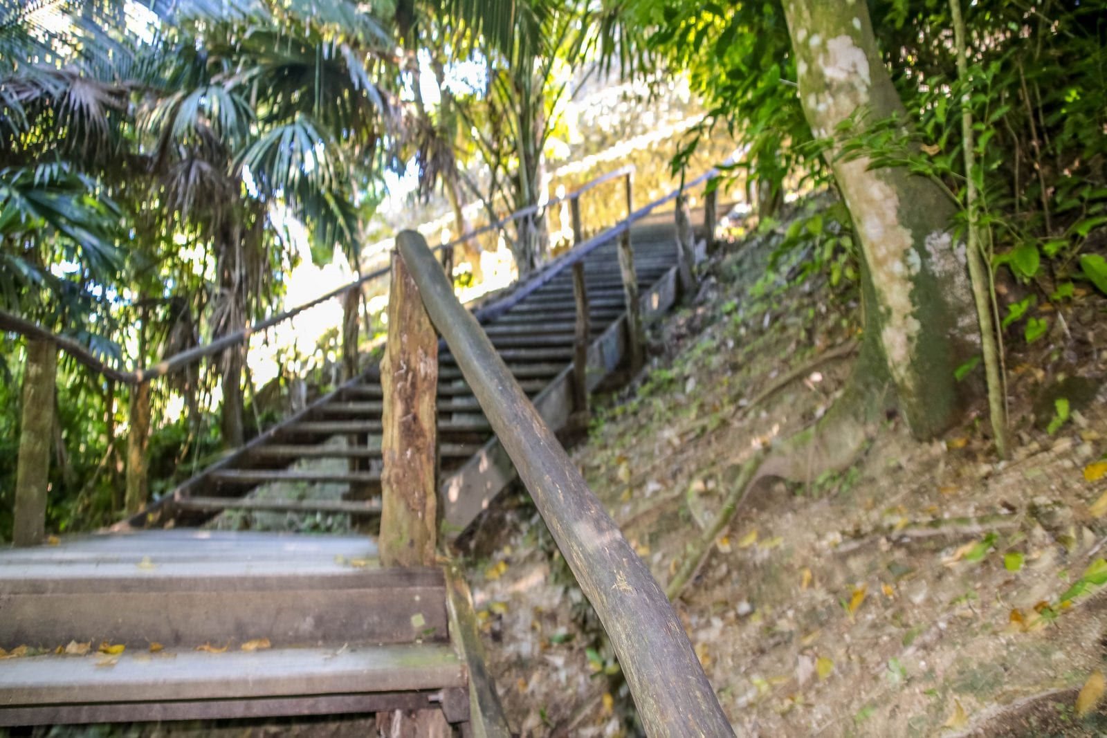 Um dennoch auf das “Dach” zu gelangen, gibt es seit einiger Zeit eine Holztreppe am linken Rand. Die Treppe führt bis zu einem oberen Plateau. Die letzten Meter müssen dann jedoch direkt an der Pyramide überwunden werden.