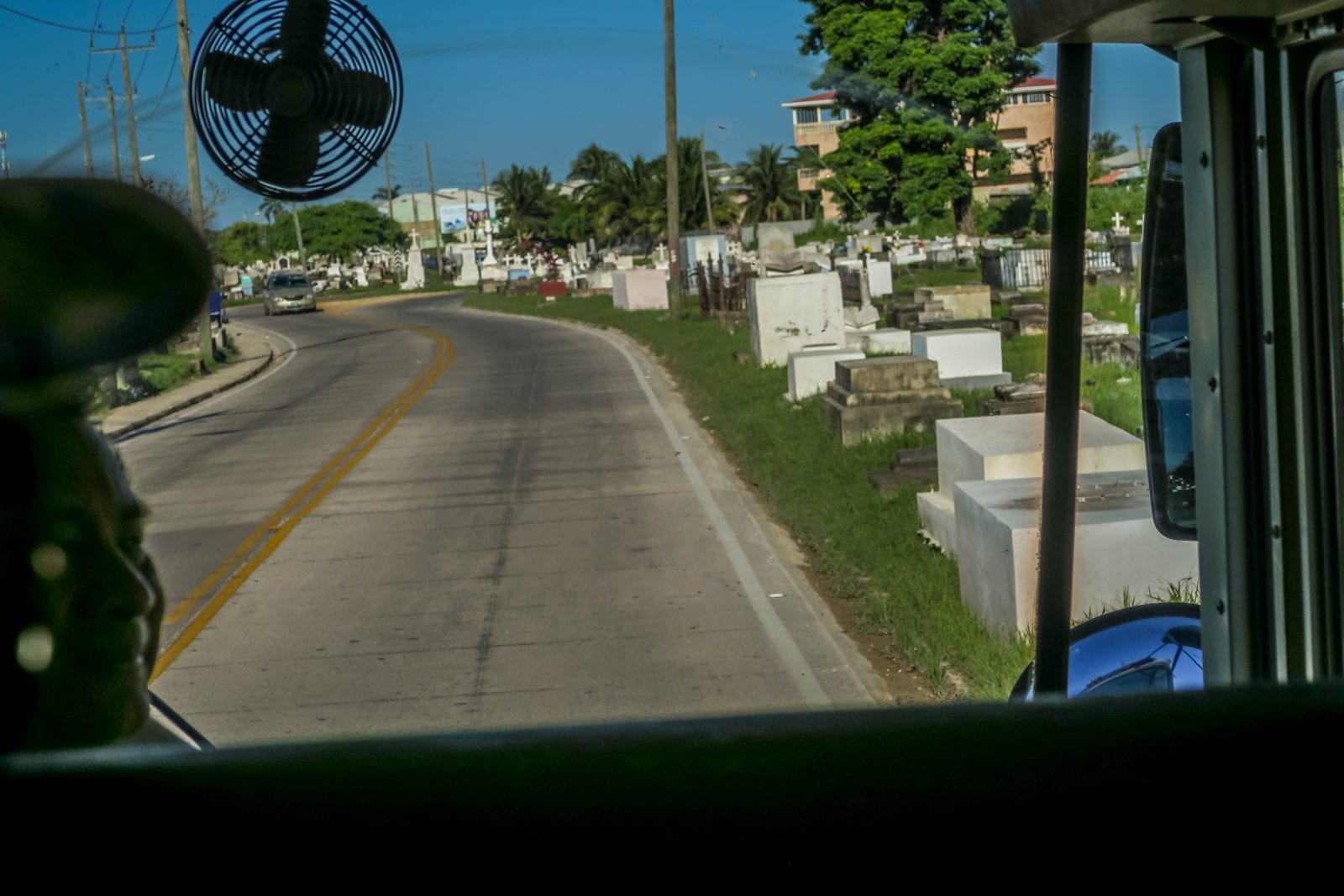 Am Stadtausgang von Belize Stadt gibt es noch ein Kuriosum. Man fährt praktisch über einen Friedhof. Oder besser gesagt, man legte einen Friedhof auf, in und neben der Straße an. Sogar die Verkehrsinsel war ein Grab.