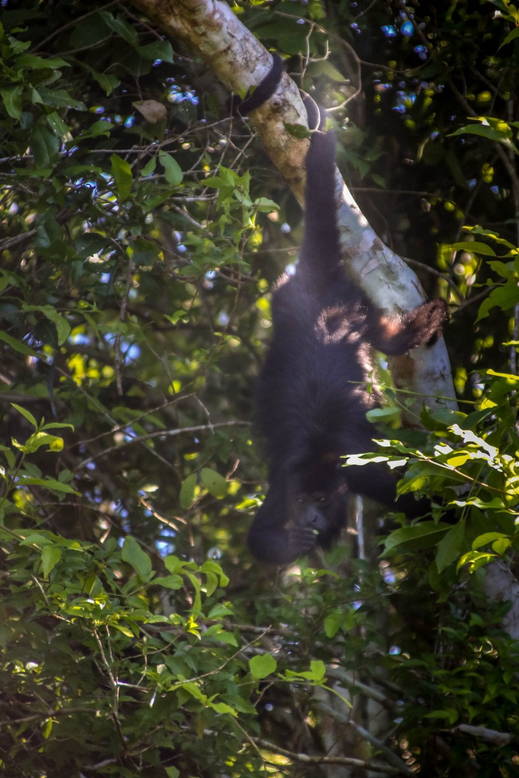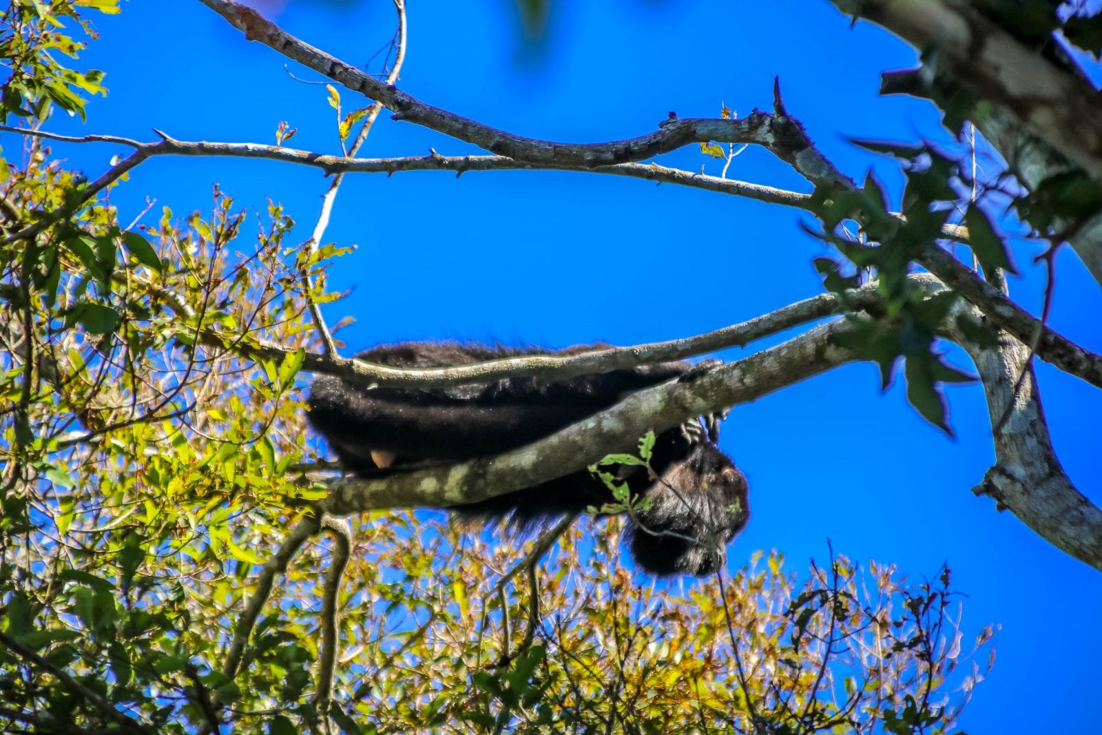 Neben zahlreichen Pflanzenarten gibt es natürlich auch jede Menge exotischer Tierarten zu bestaunen. Neben Krokodilen und Pantern, die wir zum Glück nicht antrafen, leben vor allem Brüllaffen in den bis zu 40 Meter hohen Bäumen.