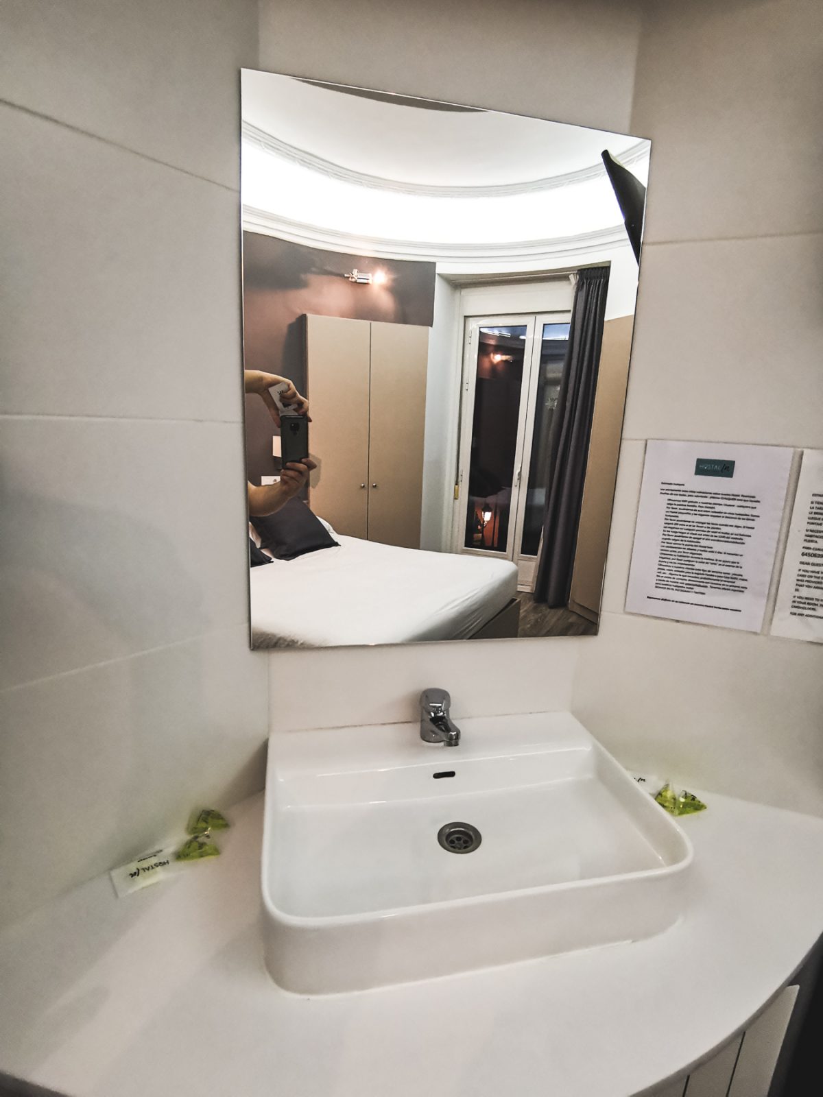 Unser Zimmer befand sich genau an der Ecke des Gebäudes mit super Ausblick auf den kleinen Platz vor der Tür. Die Zimmer selbst sind an sich nicht groß, dennoch bieten sie ausreichend Platz. Alles wurde erst kürzlich renoviert. Das Bad ist modern eingerichtet und sauber. Wenn man mag kann man auch auf den, zugegeben, extrem kleinen Balkon.