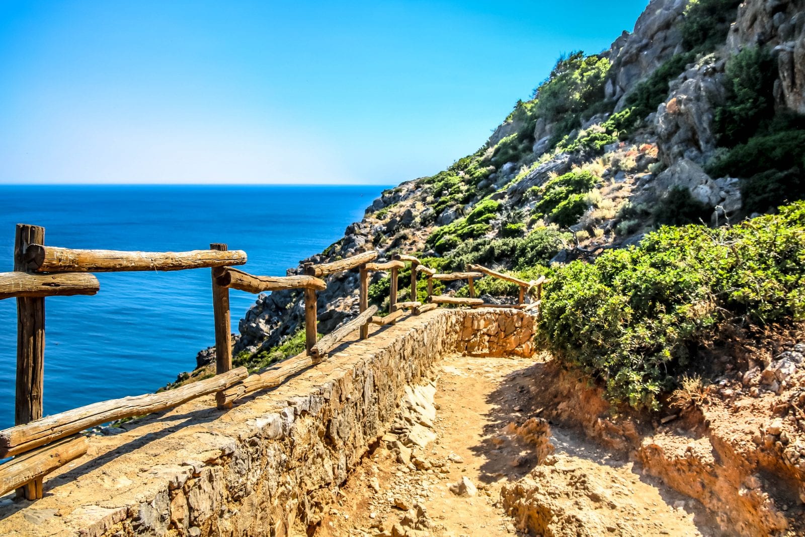 Für erfahrene Wanderer gibt es einen deutlich schwereren Weg durch die Prevelischlucht an die Mündung ins Libysche Meer.