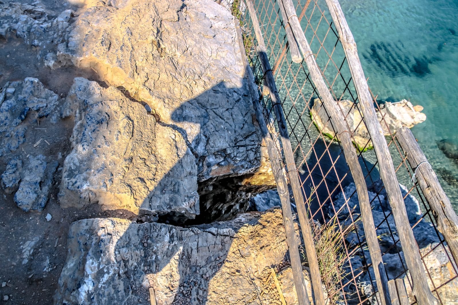 Wir würden daher älteren Menschen und Familien mit Kleinkindern wenn überhaupt nur die Variante mit dem Ausflugsboot empfehlen. Das andere ist einfach zu gefährlich. Auch sollte man feste Schuhe anziehen. Flipflops sind total ungeeignet. Die Stufen oder Felsvorsprünge sind teilweise so steil, dass die Hose zu reißen droht. Nimm daher auch nur so viel mit, wie es nötig ist. Der Fußweg dauert gute 30 Minuten.