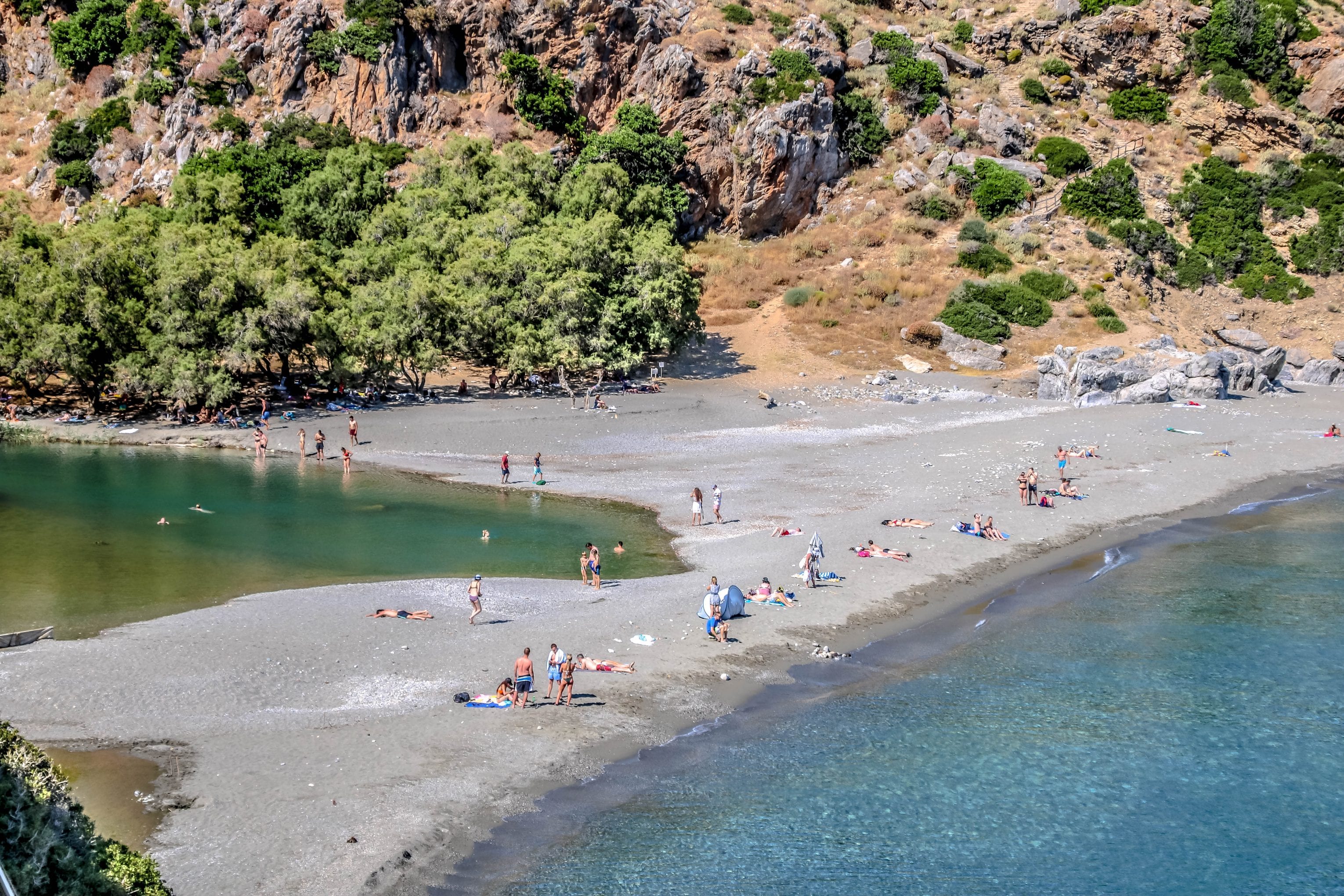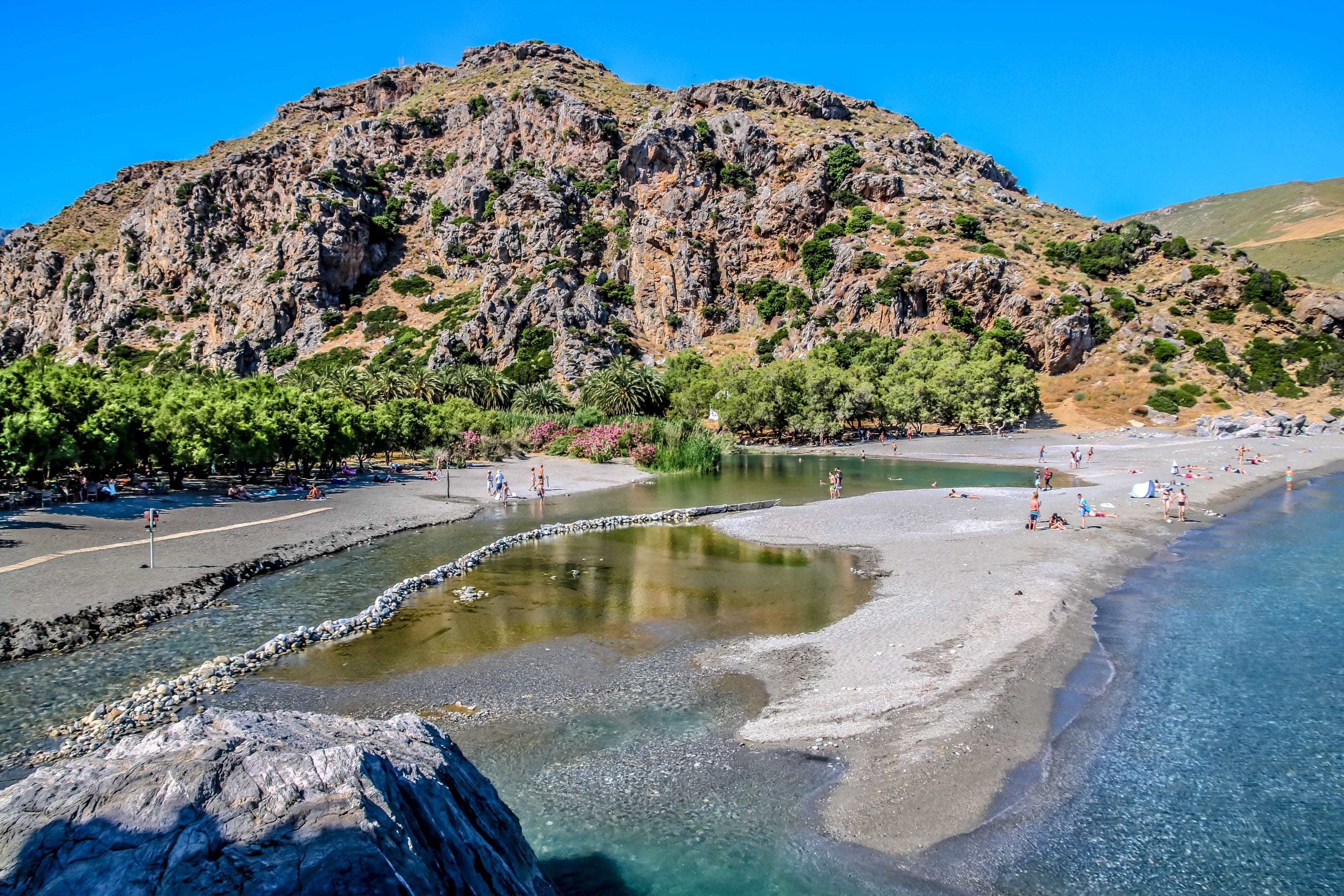 Atemberaubend ist das Naturschauspiel zwischen Fluss und Meer. Mit einer künstlich angelegten Rechtskurve mündet der Megalopotamos ins Libysche Meer. Um an den Strand zu gelangen, musst Du den flachen Fluss zu Fuß durchqueren. Im Jahr 2009 wurden von einem amerikanischen Archäologieteam 130.000 Jahre alte Schabwerkzeuge entdeckt. Eigentlich gab es damals ähnliche Fortschritte nur bei den Neanderetalern. Da Kreta auch damals weit vom Festland entfernt war, ist es nicht ganz klar, wie diese Werkzeuge nach Kreta kamen. Alternativ müsste es auf Kreta parallel eine ähnlich weit entwickelte Form des modernen Menschen gegeben haben. Es ist also in jedem Fall eine Sensation.