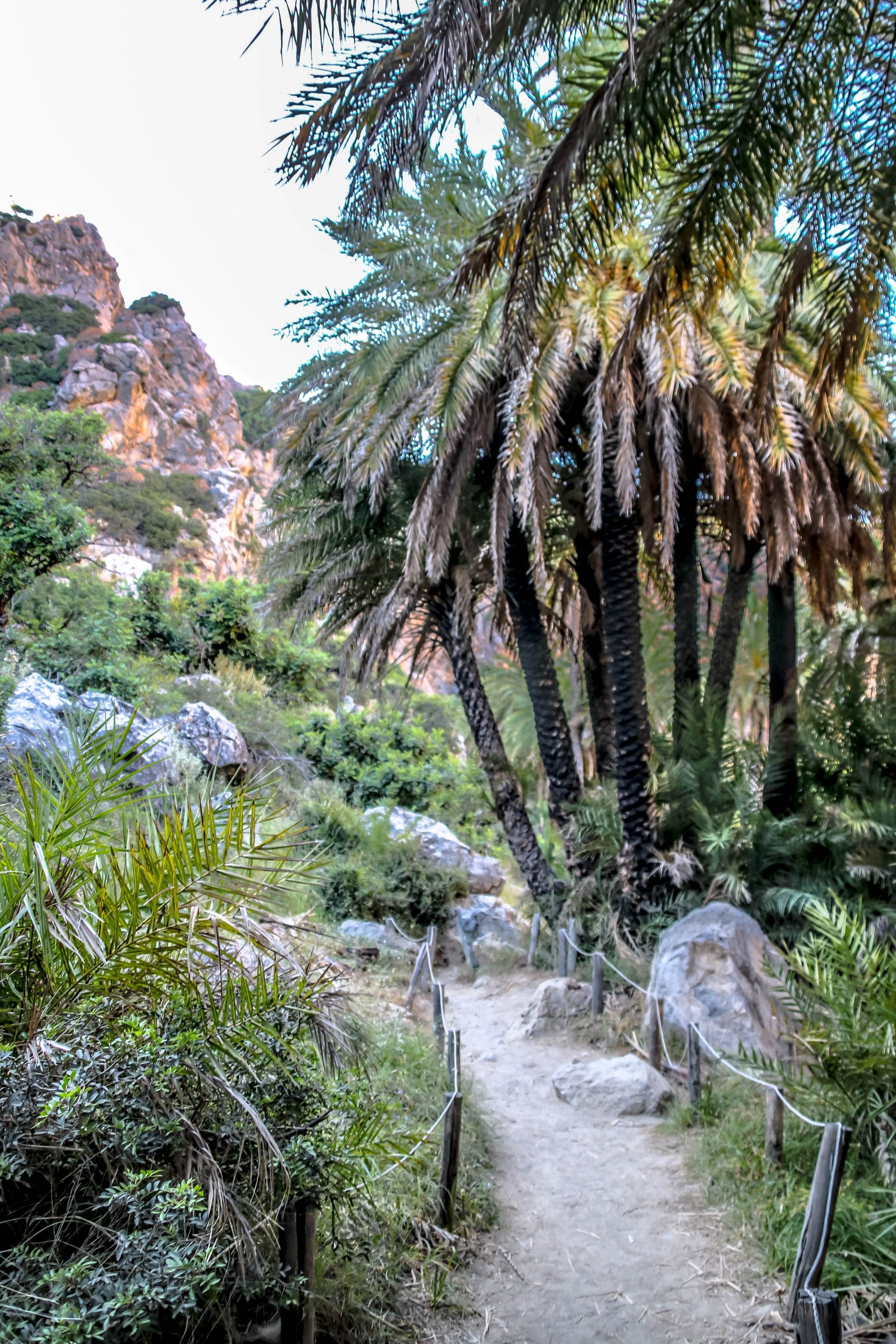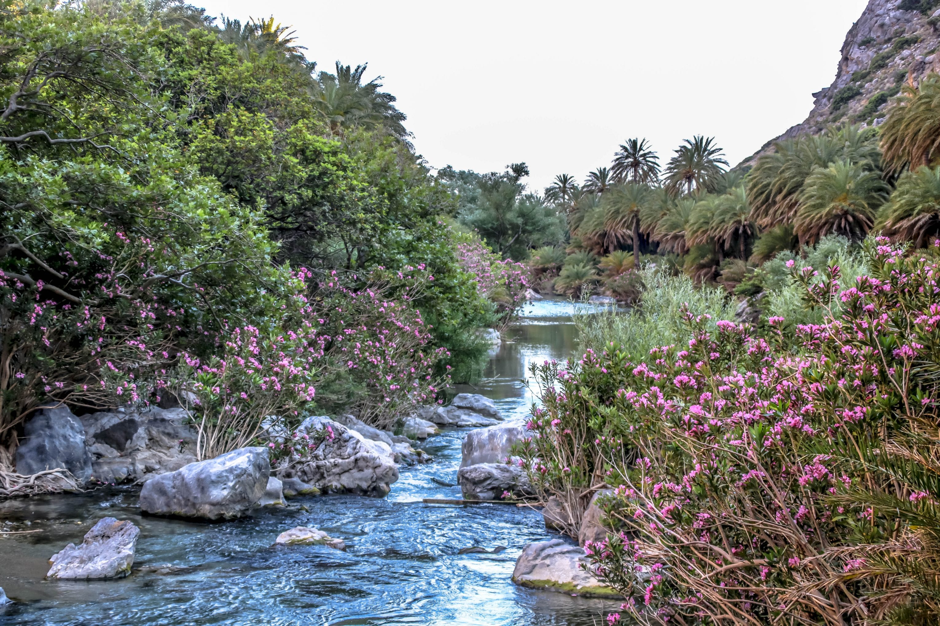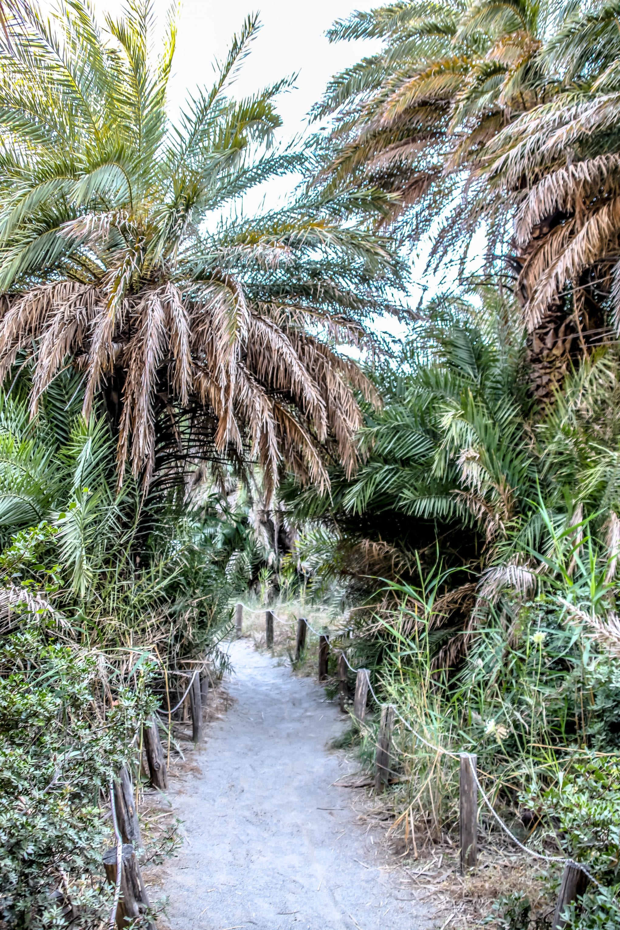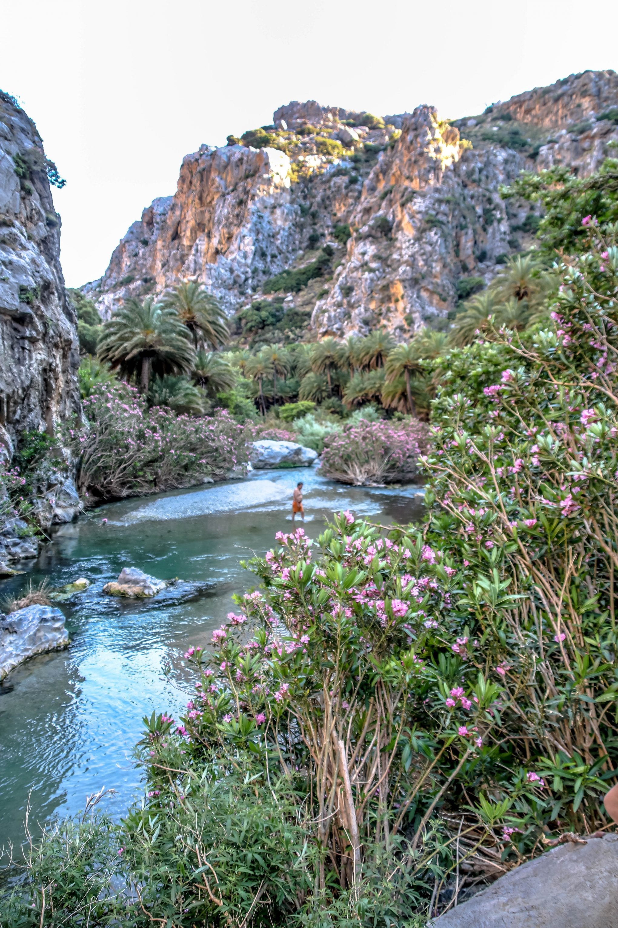 Um an den eigentlichen Strand zu kommen, musst Du zunächst durch den flachen Fluss waten. Das Meer an Kretas Südseite ist aber auch abends noch lau warm. Der Weg lohnt sich auf jeden Fall. Ein wirklich außergewöhnlicher Palmenstrand in Europa.